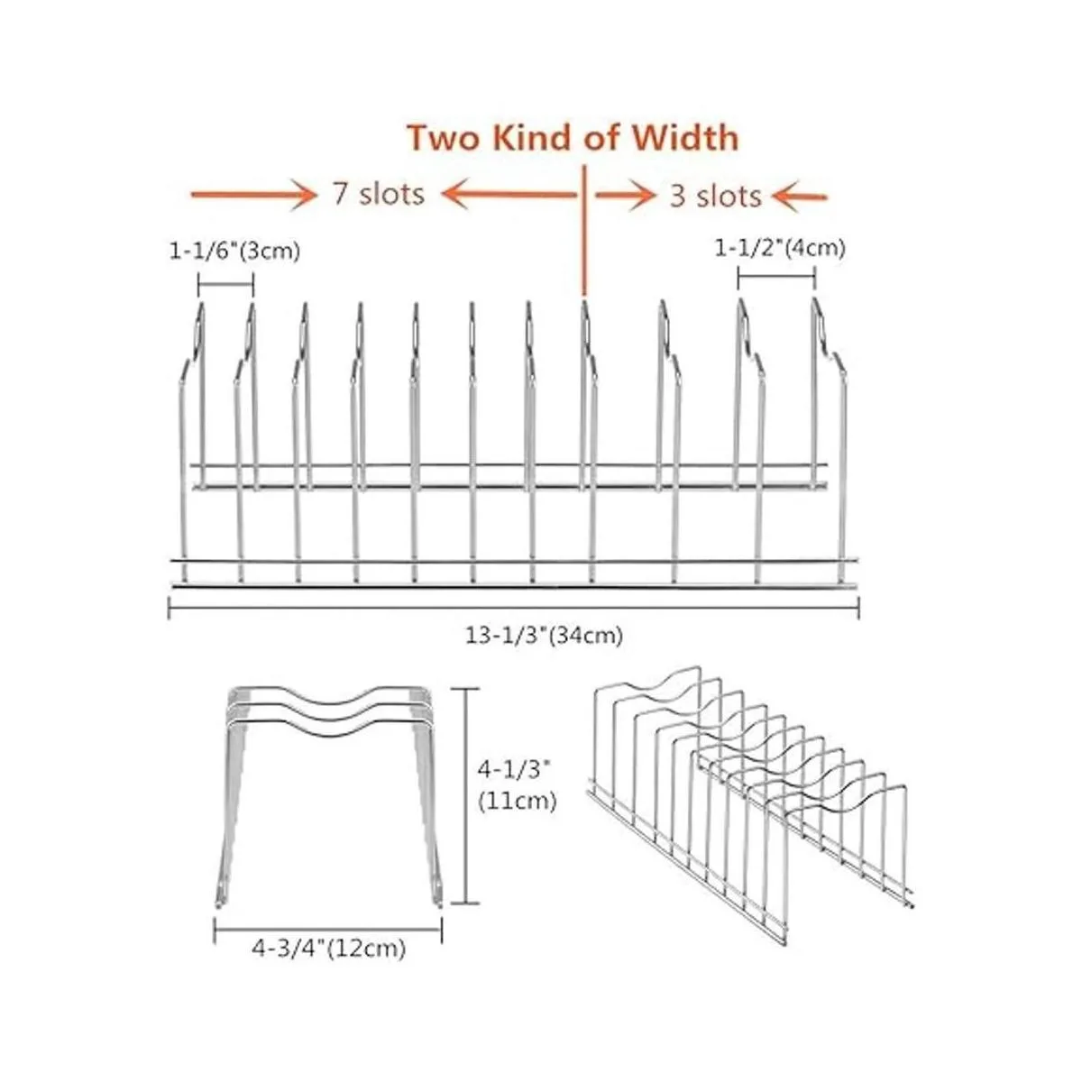 Organizador versátil: 10 divisores, 10 ranuras. Te ayuda a organizar tapas, platos, bandejas para hornear, tablas de cortar y más con facilidad. Fácil de usar y de mayor capacidad.