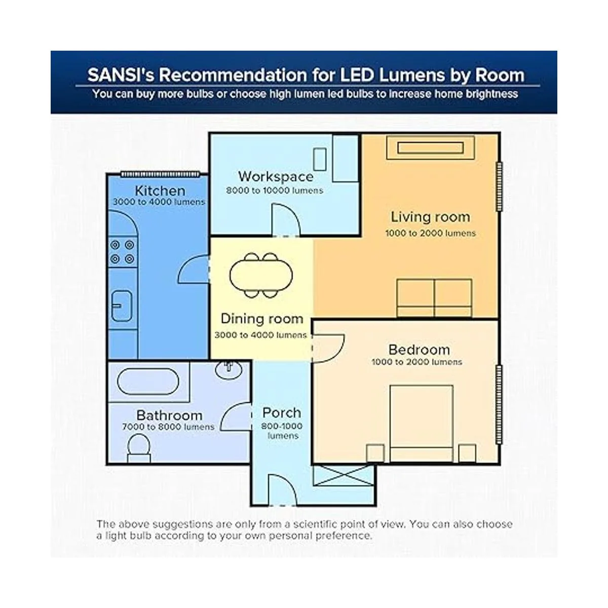 Brillante y eficiente: en comparación con otras bombillas LED, las bombillas altamente eficientes de SANSI pueden proporcionar 6500 lúmenes utilizando solo 35 vatios de potencia, equivalente a bombillas incandescentes de 650 W. Basado en 3 horas al día de uso, ahorra hasta un 95 de electricidad, costo estimado anual 3.83.