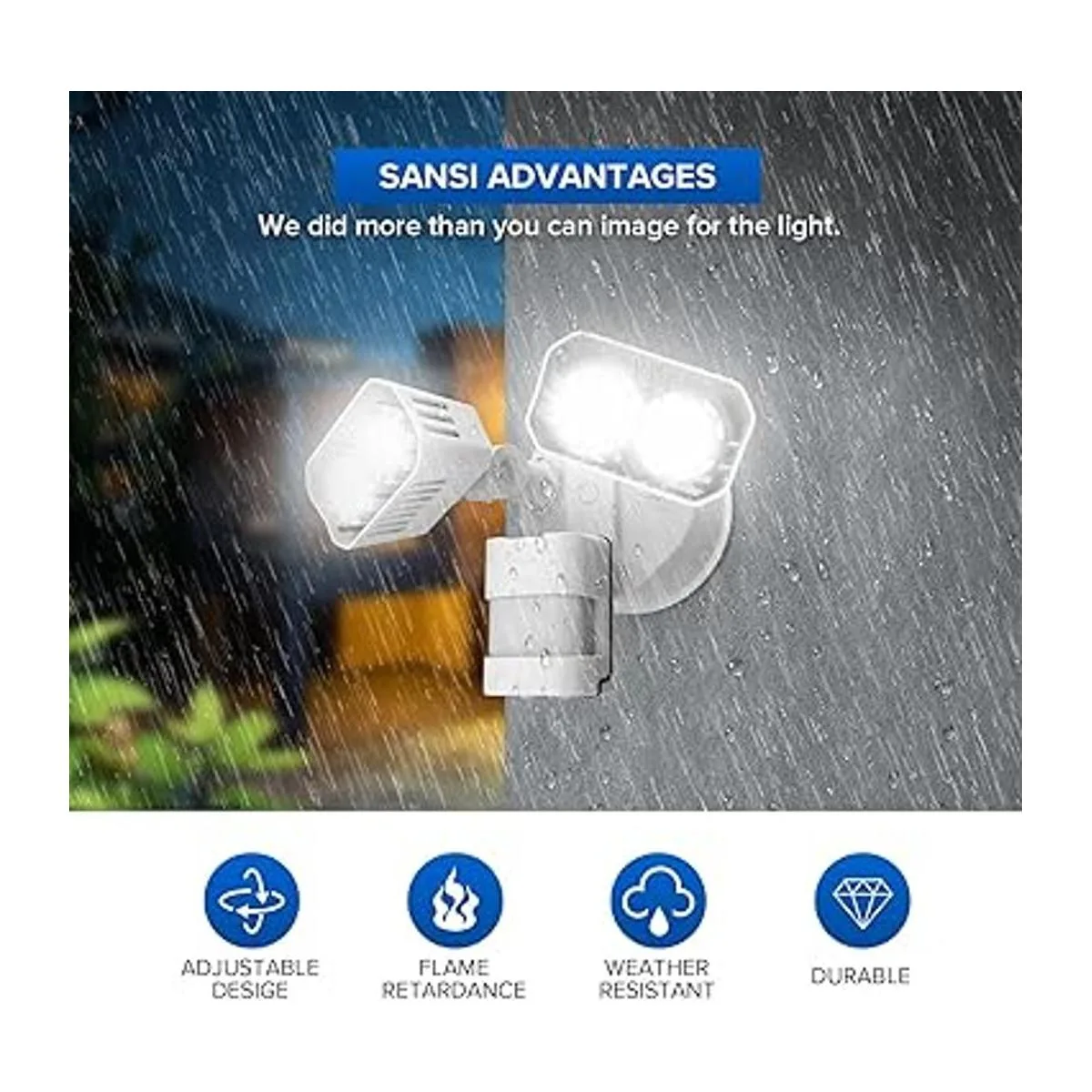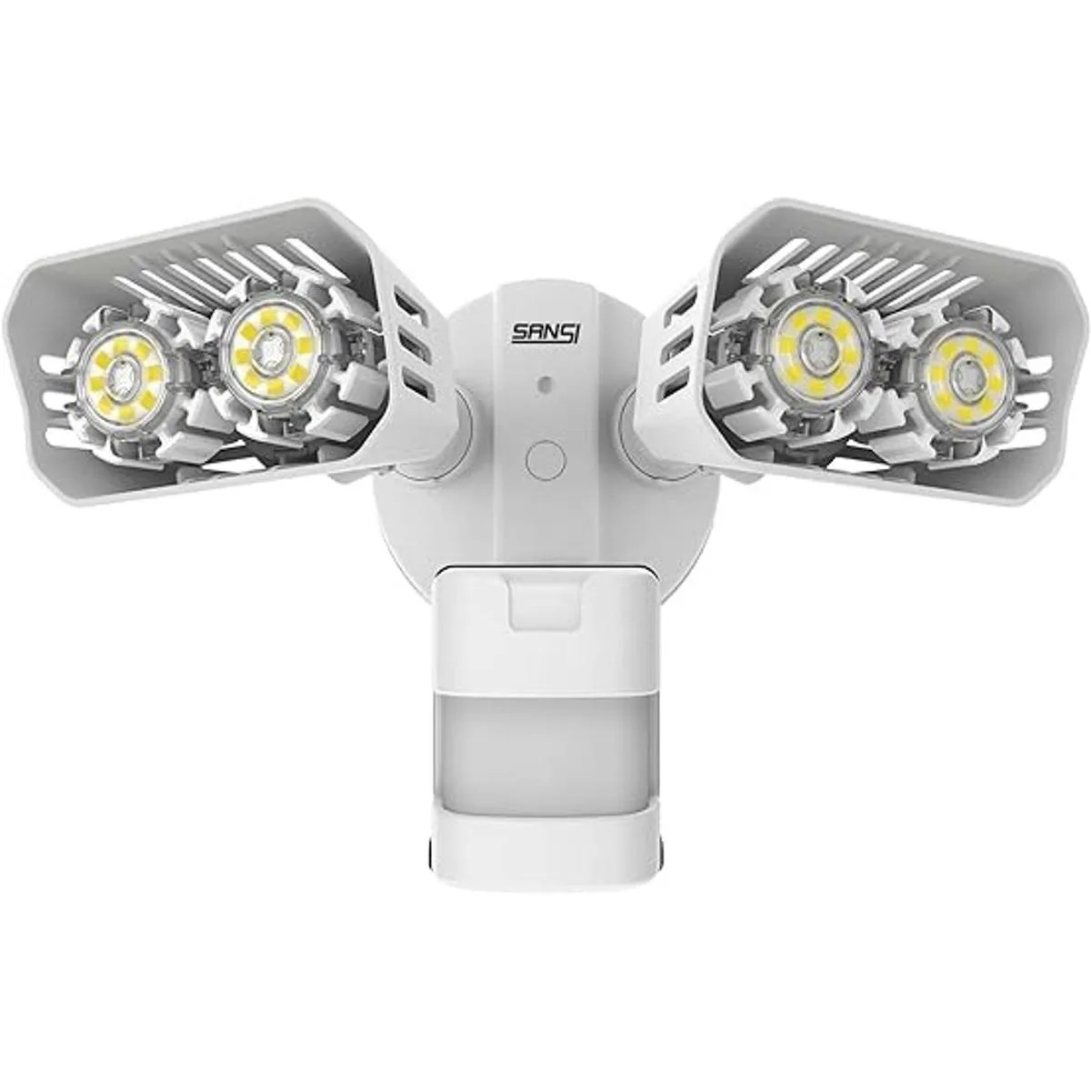Superbrillante con amplia cobertura: doble cabeza ajustable súper brillante con 4 bombillas LED que produce hasta 1800 lm de brillo. La luz de seguridad Sansi cubre 861 pies cuadrados cuando se monta en la pared a 8 pies, proporcionando el brillo que esperas en una luz de seguridad de alta calidad y altamente eficiente