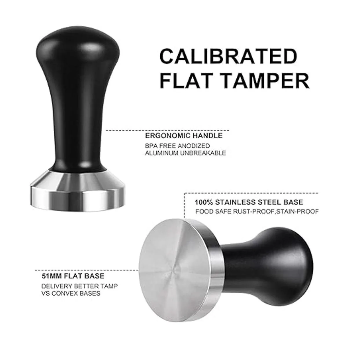 El mejor espresso de sabor: la base de tamper de café bien equilibrada está mecanizada y pulida para producir la compresión perfecta y uniforme de la cápsula de café. La manipulación de espresso es probablemente los accesorios más importantes para la preparación exitosa de un excelente espresso y capuchino.