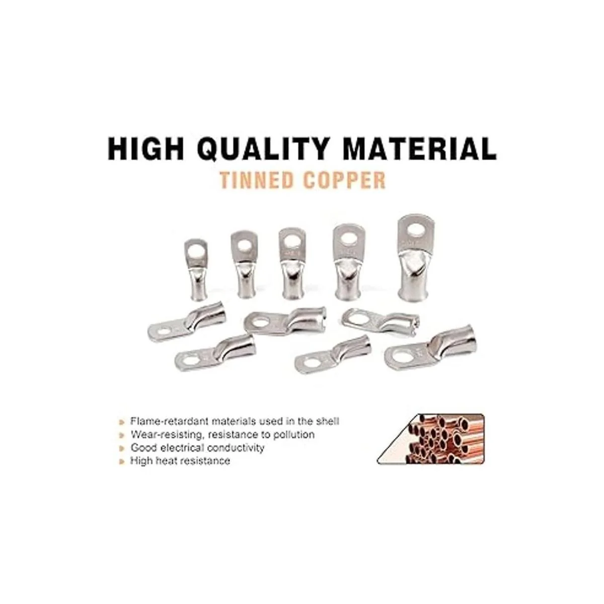 Amplias aplicaciones: estas lengetas de cable de batería son seguras y fiables, ideales para cajas de distribución, marina, carritos de golf, paneles solares, aplicaciones domésticas, etc. El tubo termorretráctil es ideal para vehículos, motocicletas, barcos, cables eléctricos de bricolaje y otras aplicaciones al aire libre.