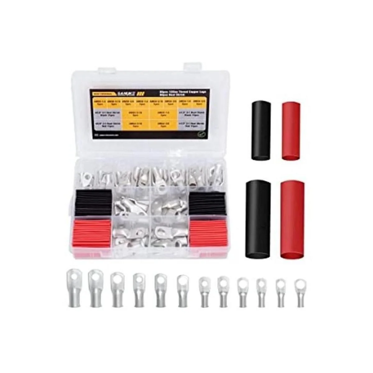 Lo que obtienes: en este juego, ofrecemos 60 terminales de anillo de cobre estañado AWG 2, 4, 6, 8 para tu trabajo, 2 tamaños, 2 colores, 60 piezas de tubo termorretráctil adhesivo de doble pared 3:1, satisface tus diferentes necesidades.