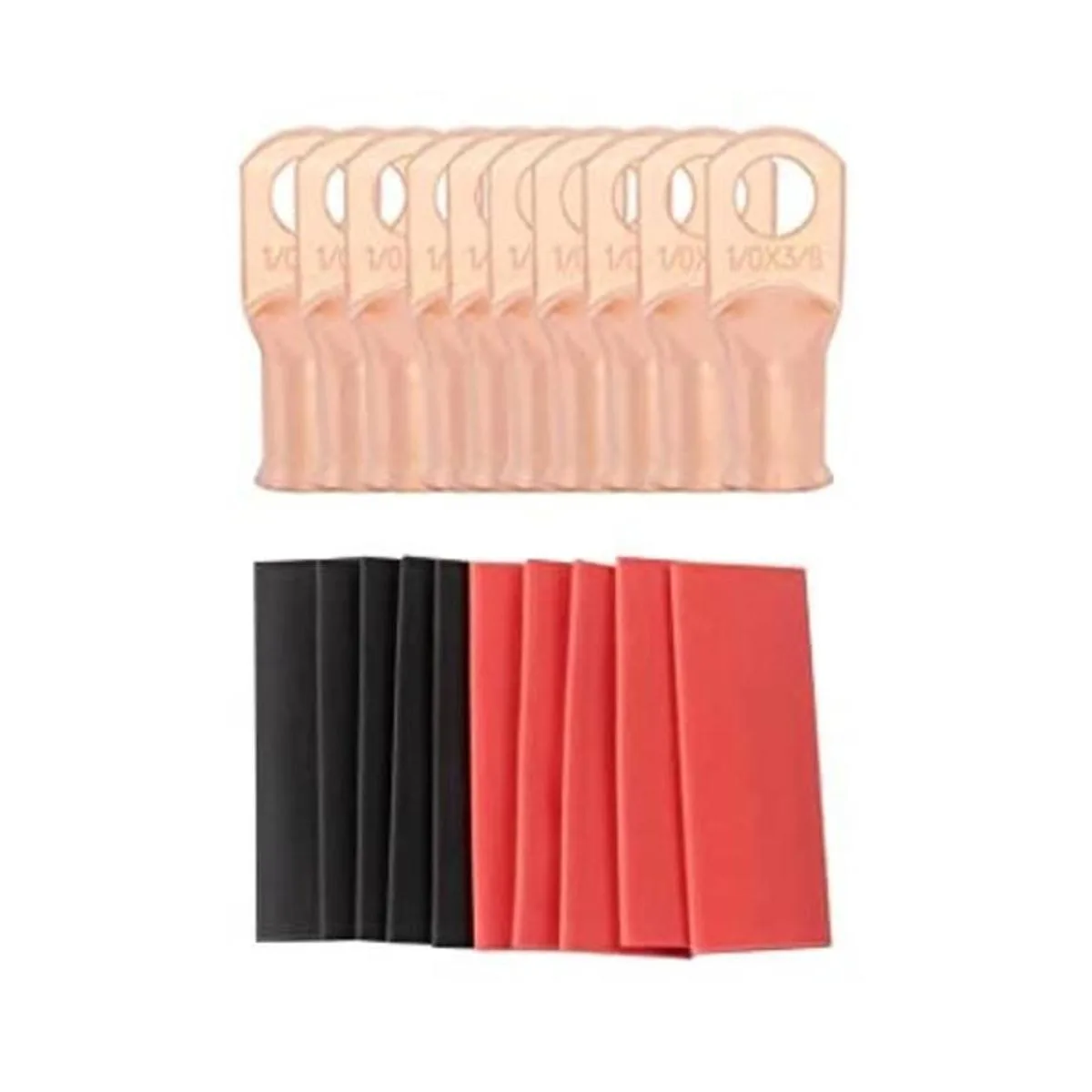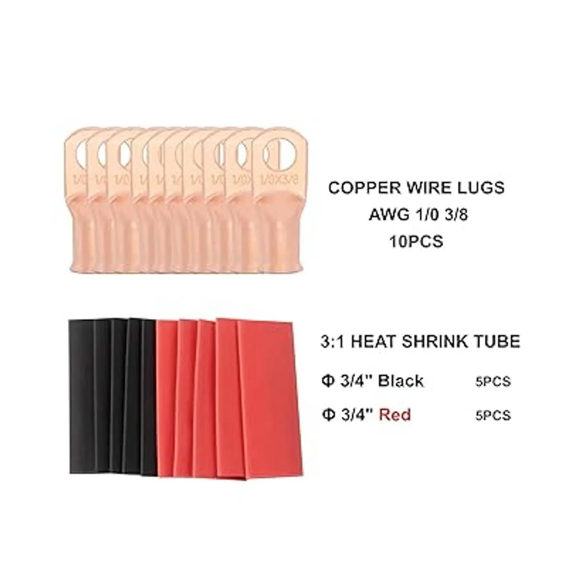 Lo que obtendrás: En este juego, ofrecemos 10 terminales de anillo de 1/0 AWG 3/8 pulgadas M10 terminales de anillo de cobre para tu trabajo, 5 tubos termorretráctiles adhesivos de doble pared 3:1.