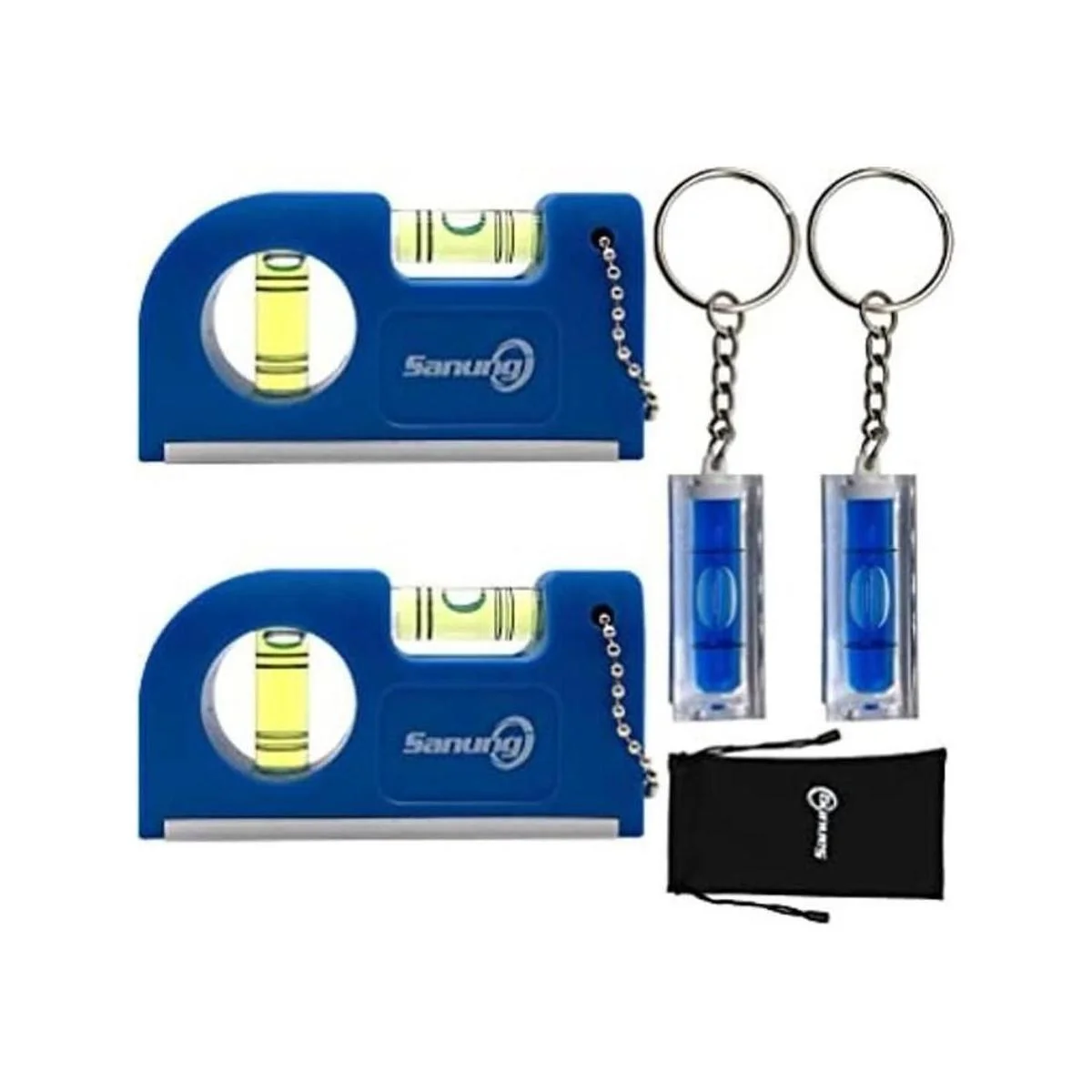Sanung 4 niveles de alcohol portátiles con base magnética pequeña burbuja de bolsillo niveles de medición llavero horizontal vertical nivelador con bolsa de almacenamiento para carpintería trípode reloj de pared