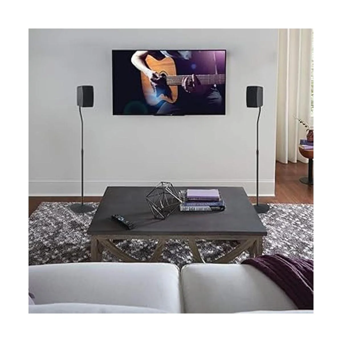 Construido de acero de calibre pesado para un rendimiento superior y una amplia base estable para ofrecer una experiencia de audio de alta calidad, el par de soportes de altavoces SANUS de altura ajustable es el complemento ideal para tu configuración de cine en casa.