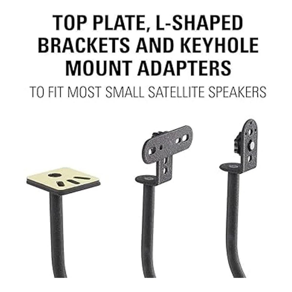 Verdaderamente universal, este par de soportes para altavoces está diseñado para sostener pequeños altavoces de satélite y estantería de hasta 3.5 libras. Compatible con altavoces Bose, Harmon Kardon, JBL, Sony, Samsung y mucho más. El juego cuenta con tres configuraciones de montaje, incluyendo soportes en forma de L, placa superior y adaptador de ojo de cerradura para maximizar la compatibilidad con tus altavoces.