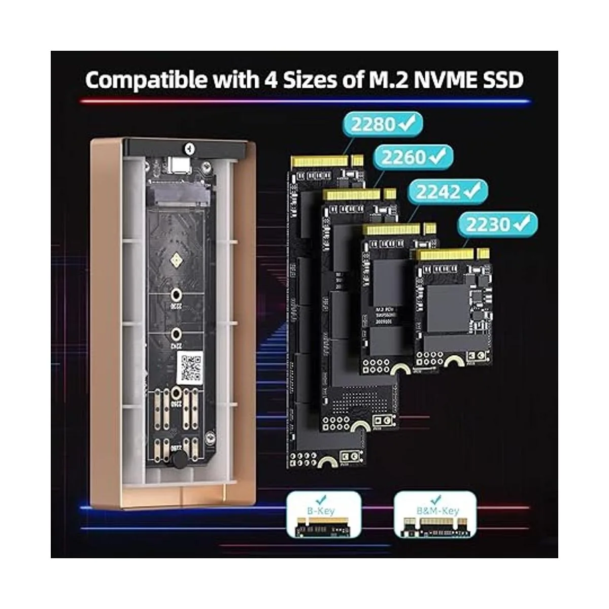 SANZANG M.2 NVME SSD gabinete para juegos, USB 3.1 Gen 2 10 Gbps tipo C a NGFF NVME PCIe MKey BM Key, carcasa de unidad externa de estado sólido, compatible con molduras UASP para SSD tamaño 2280226022422230