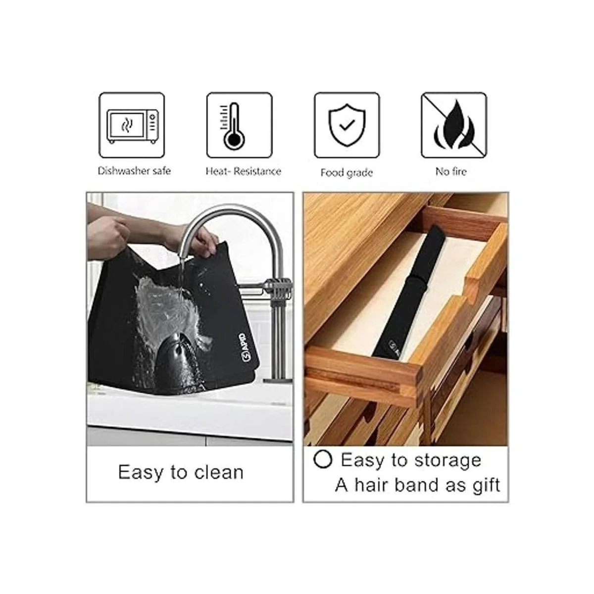 Fácil de limpiar y almacenar: gracias a la superficie antiadherente, es muy fácil de limpiar. Simplemente sumerge en agua tibia y jabón durante unos minutos, el pegamento derramado se puede quitar fácilmente. Habrá 1 banda para el pelo como regalo, puedes atar la alfombrilla con la banda para el pelo, es conveniente para almacenar.