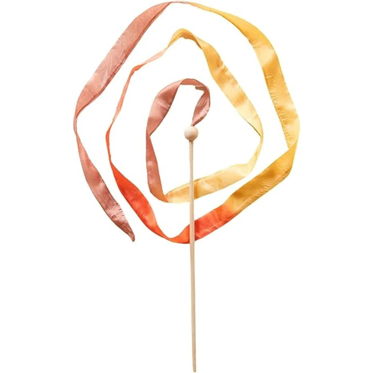 Sarahs Silks Boho Rainbow Streamer Varita de cinta de 8 pies de largo para niños, juego de simulación, baile, giro de bastón y recuerdos de fiesta de gimnasia 100 seda y madera Montessori y Waldorf Juguetes
