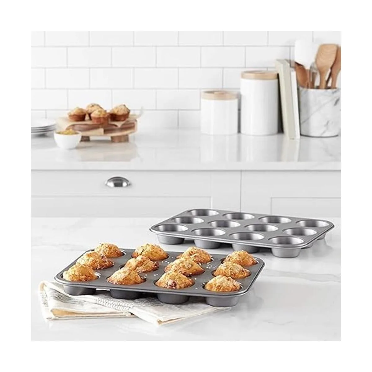 Sartén antiadherente para magdalenas, 12 tazas, juego de 2