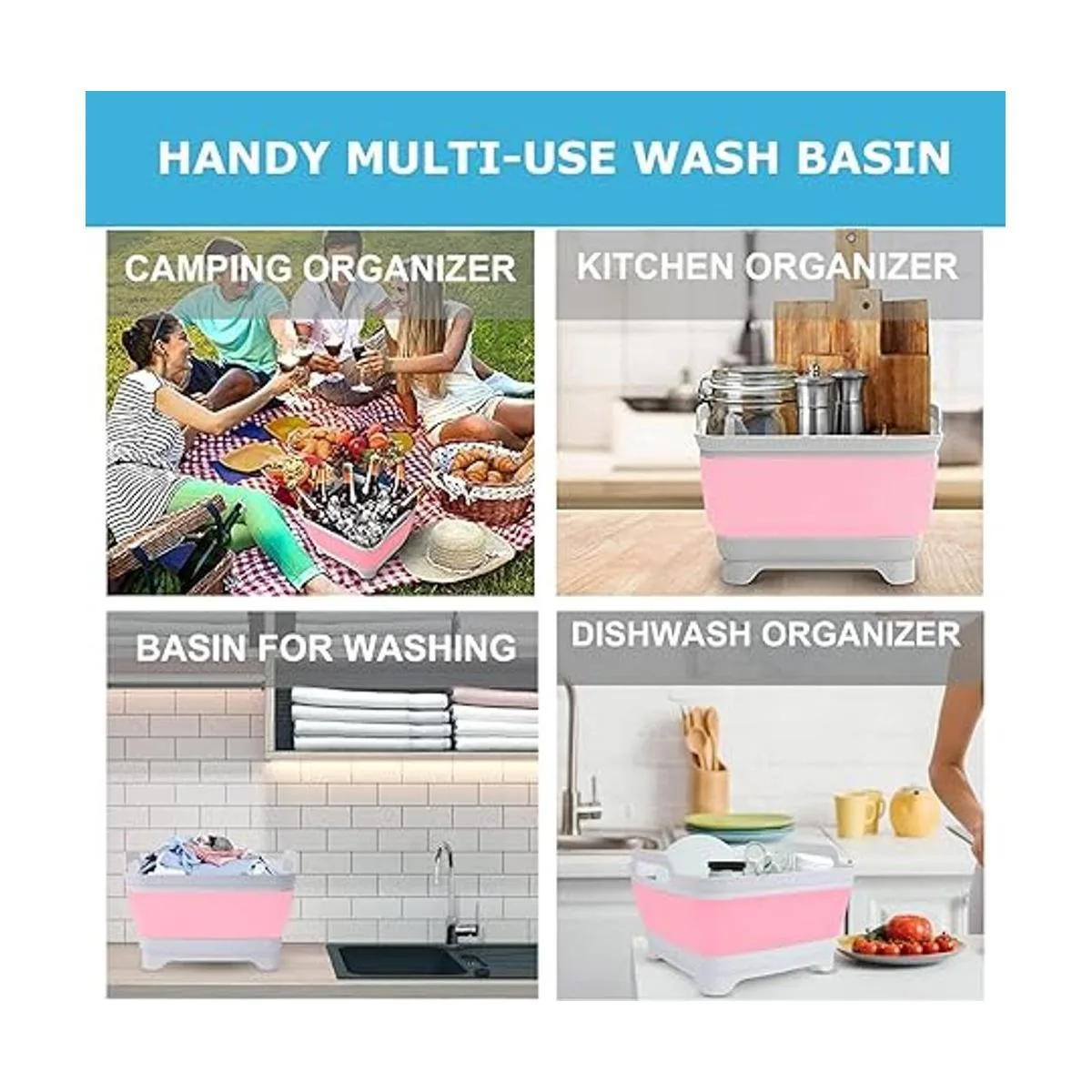 Versátil y multifuncional: cesta de lavado plegable, bañera de platos, fregadero RV tamaño 9L, lavabo plegable con tapón de drenaje. Fácil de plegar, lleva tu estación de lavado de camping. Bañera plegable para pies.