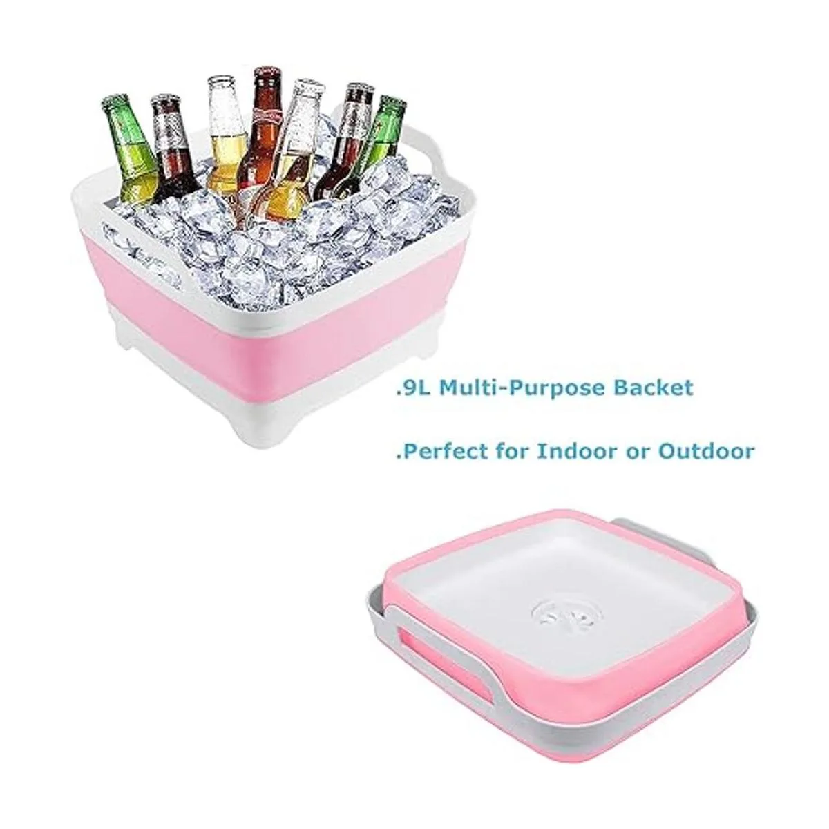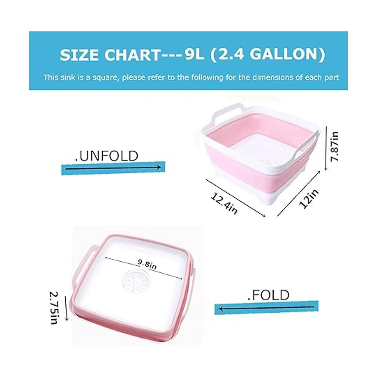 Sartén para lavar platos, bañera plegable de 9 L, lavabo portátil, lavabo plegable, lavabo con tapón de drenaje, lavavajillas para fregadero de cocina, tina de lavado de platos de campamento, color rosa