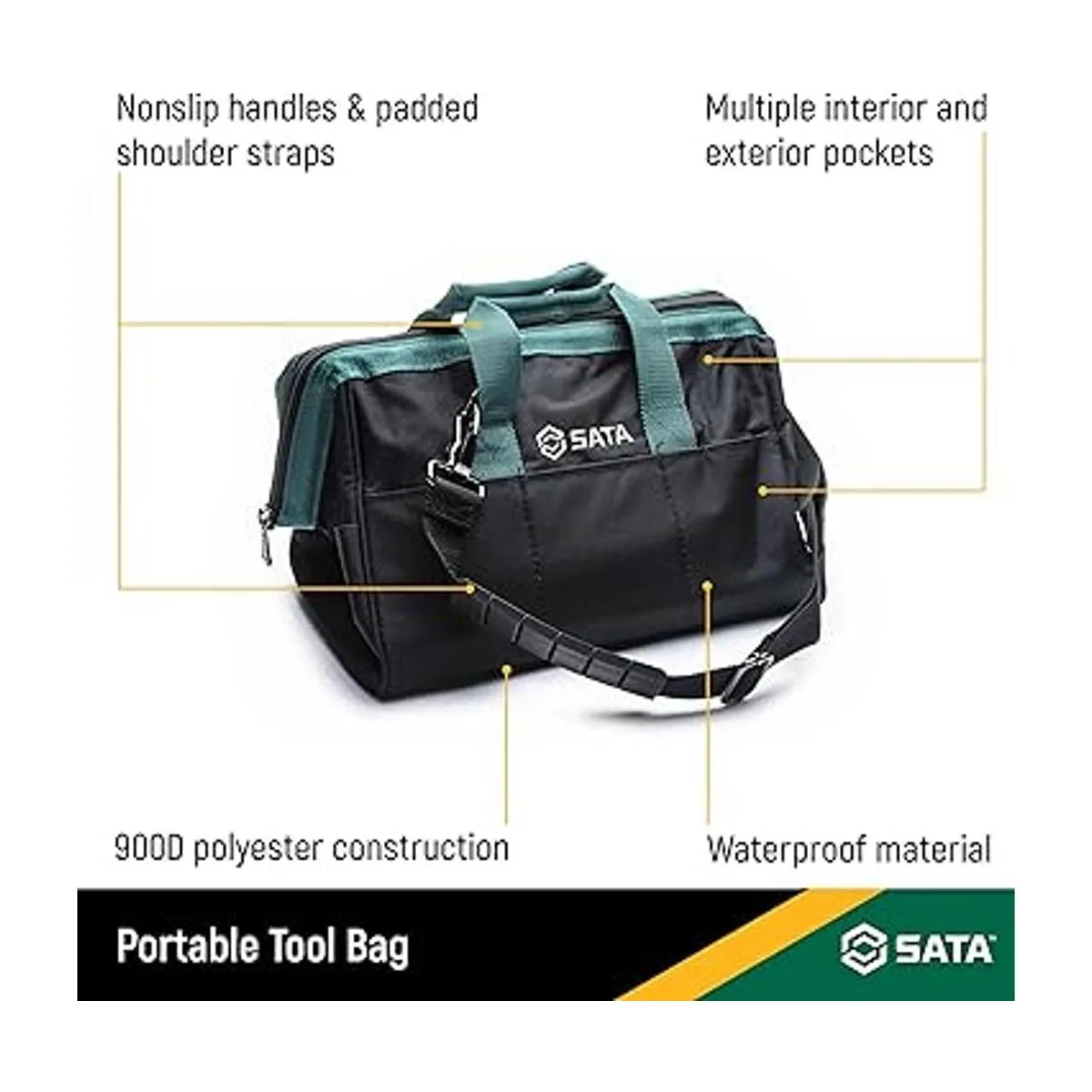 SATA Bolsa de herramientas portátil de 13 pulgadas con estructura impermeable y múltiples bolsillos interiores y exteriores, almacenamiento de herramientas y organizador ST95181