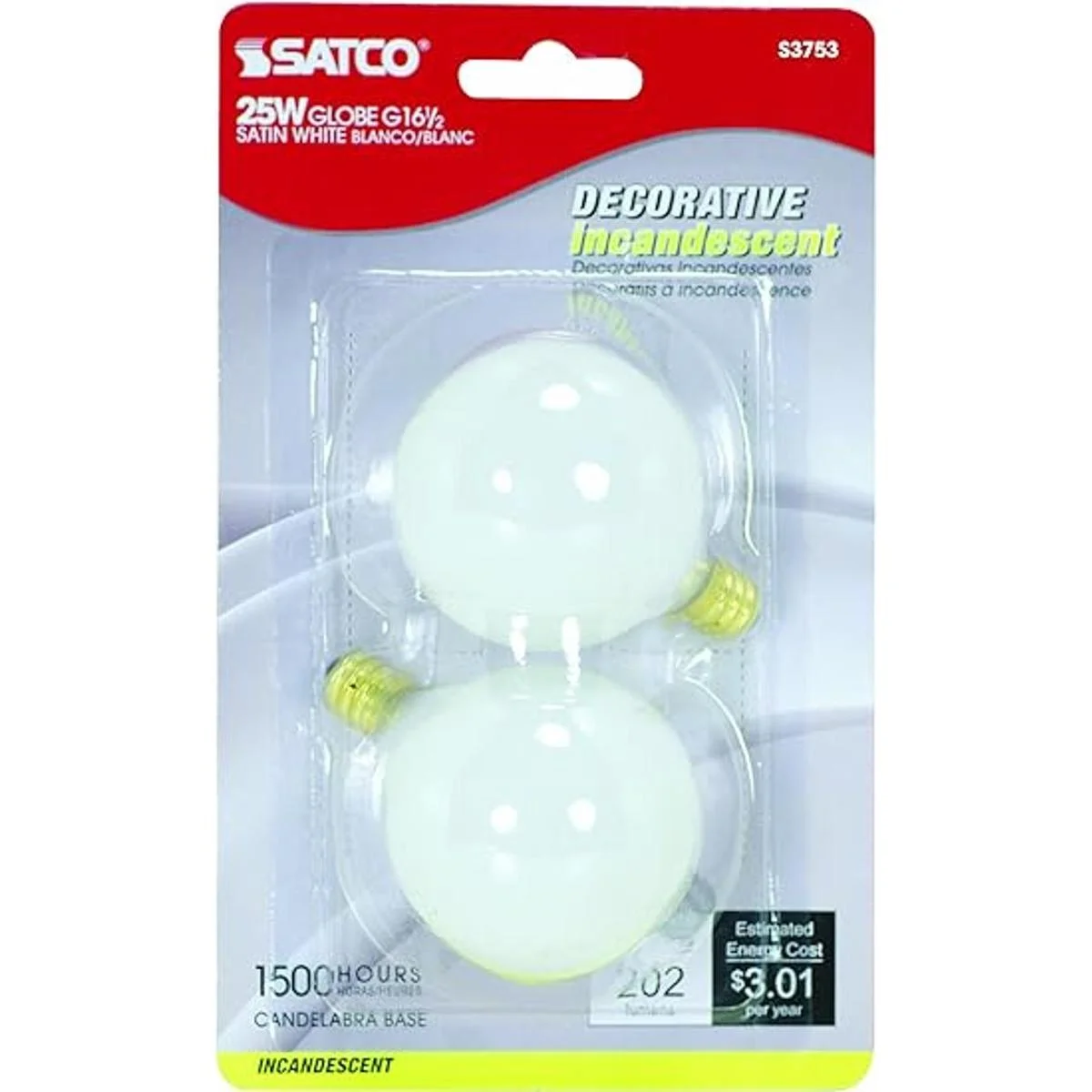 Satco S3753 120 V candelabro Base 25watt G16.5 Bombilla, satinado, color blanco