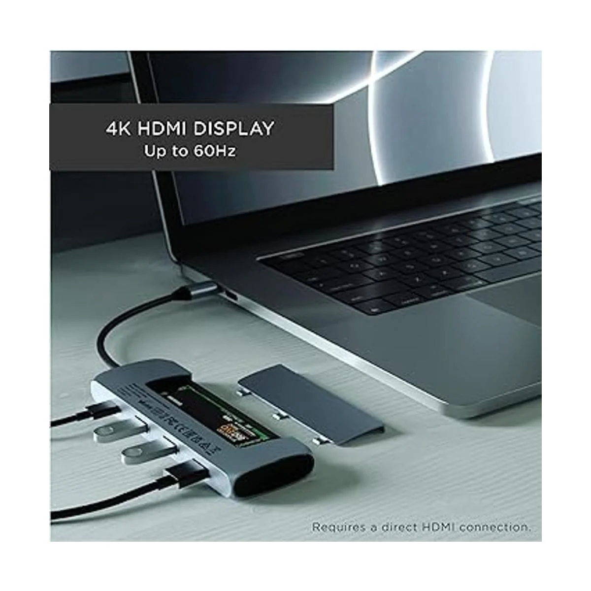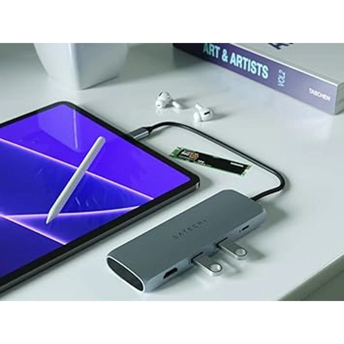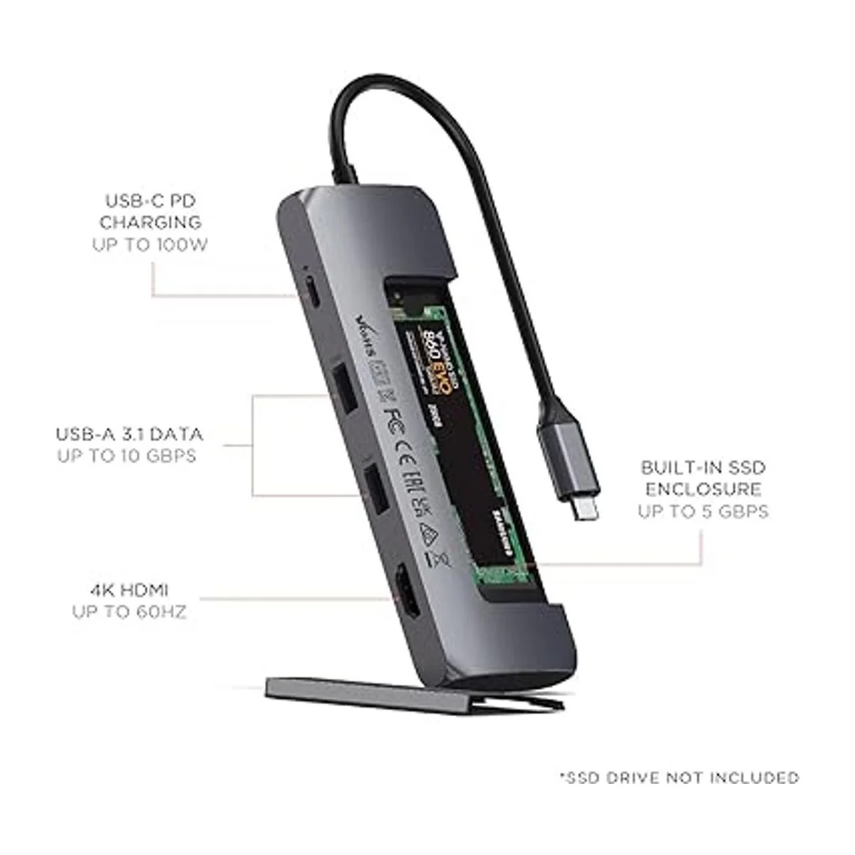 Satechi Adaptador multipuerto híbrido USBC compatible con SSD M.2 SATA, 4K HDMI 60Hz, USBC PD, puertos de datos USBA 3.1, compatible con MacBook Pro M1 Pro y Max 2021, MacBook AirPro M1 2020 gris espacial