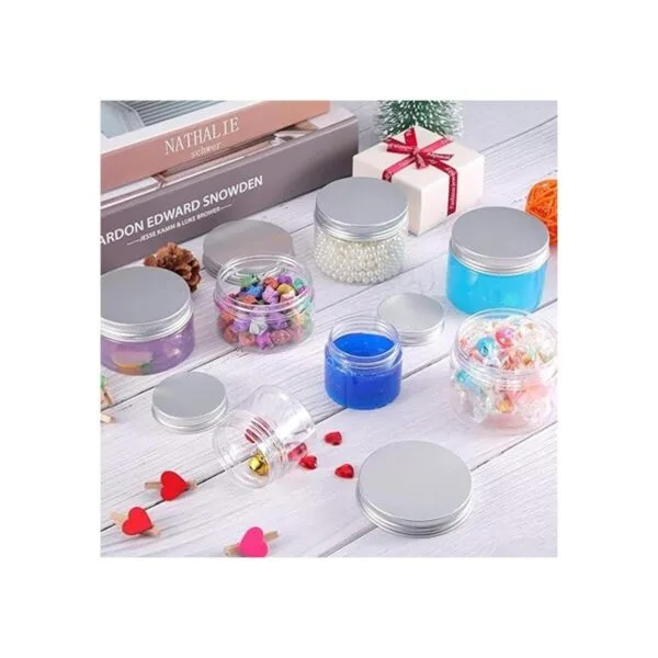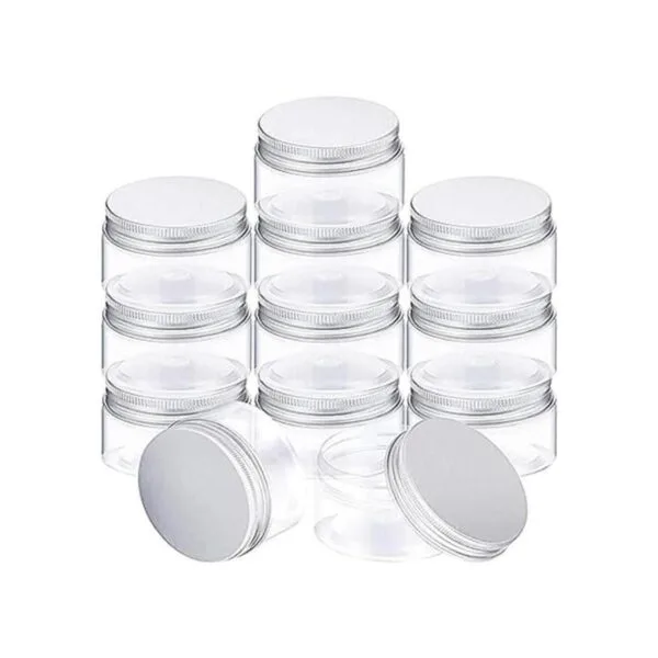 Paquete: incluye 12 tarros de plástico con tapas de rosca plateadas; son recargables y duraderos para un uso a largo plazo