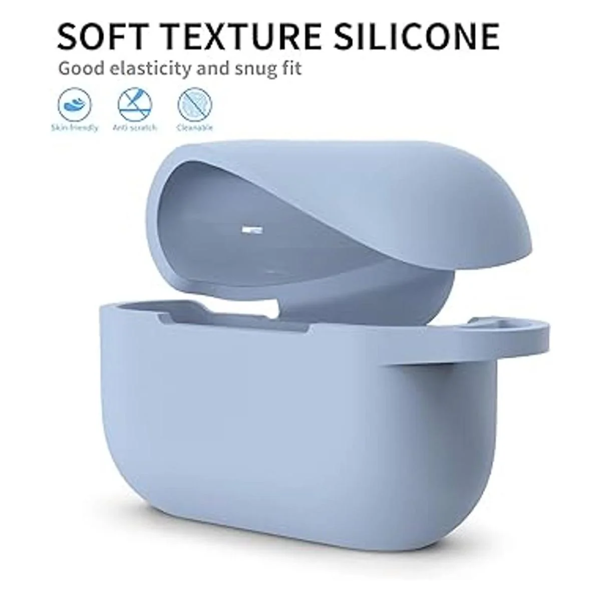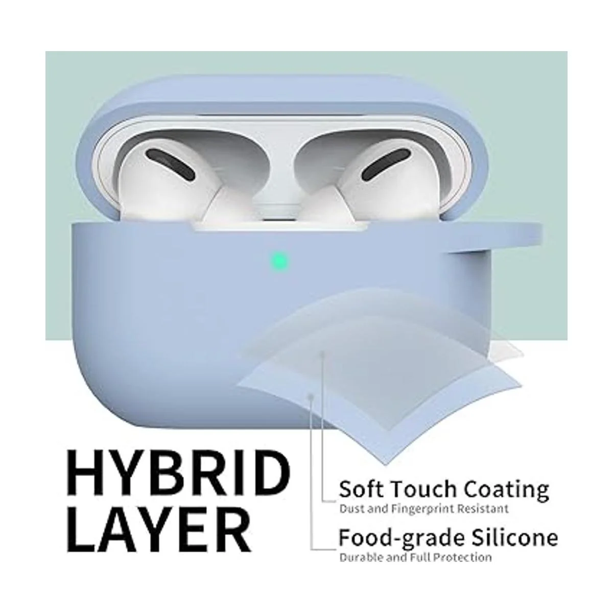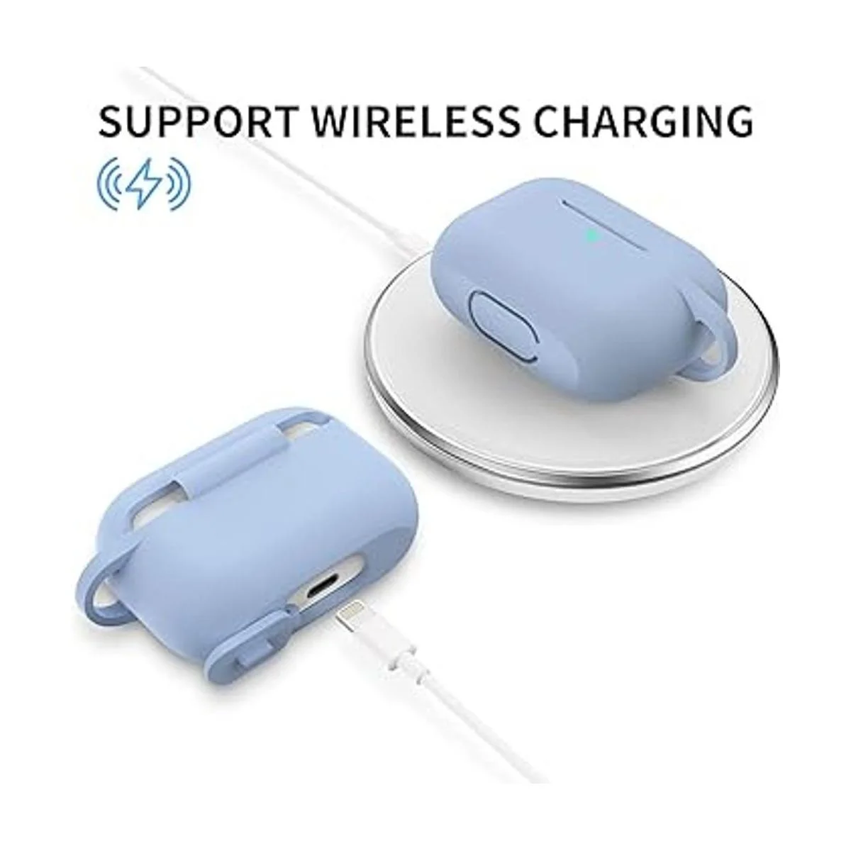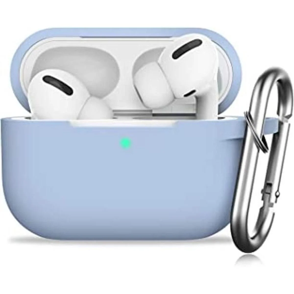 SATLITOG Funda protectora de silicona con llavero, compatible con Apple AirPods Pro frontal LED visible.