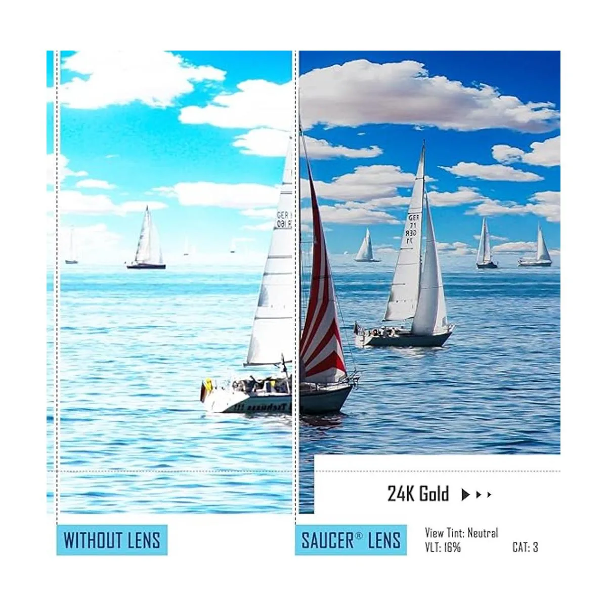 Polarización Hyper Precise 100 eliminación total de reflejos SAUCERTM garantía para ofrecer el más alto nivel de eficiencia en bloquear el deslumbramiento horizontal.