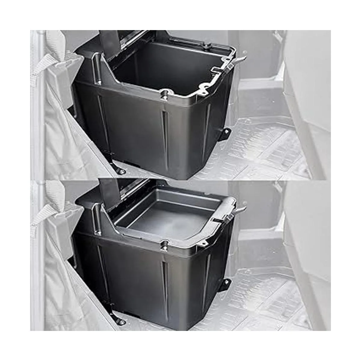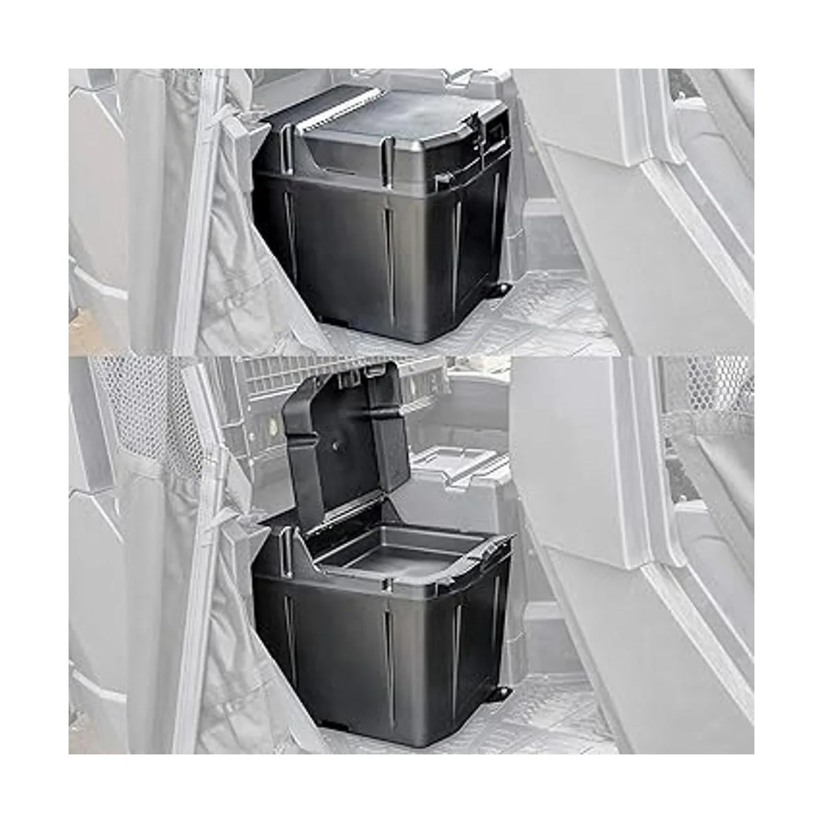 Hecho de polipropileno de alta densidad; instalación rápida y fácil; el paquete incluye: 1 caja de almacenamiento debajo del asiento con soporte de montaje y tornillos