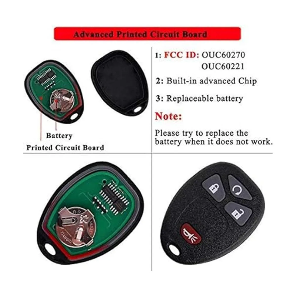 Números de pieza: este control remoto de coche funciona como un reemplazo para FCC ID: OUC60270, OUC60221; reemplaza P/N: 15913421, 20868672, 20952474, 22759546, 22936098; para IC/otros: M3N5WY81099 Y, 850K60270, 850K60221.