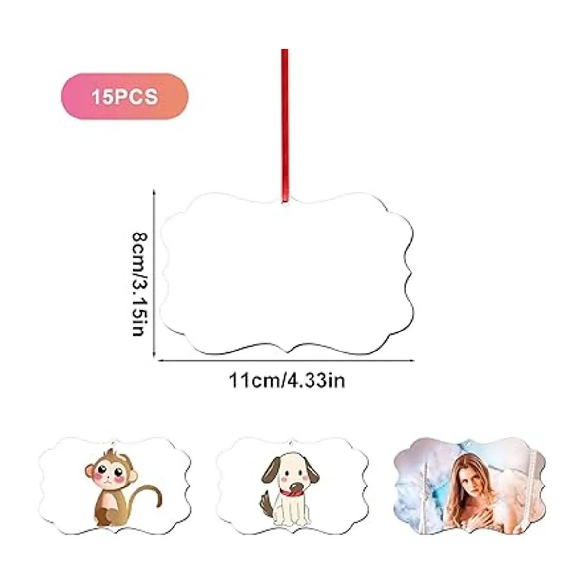 SAVITA 15 colgantes de sublimación en blanco, colgante de sublimación personalizado de MDF con cintas rojas para colgar, discos en blanco, adornos de Navidad, suministros de creación de bricolaje, Metal, Sin gemas.