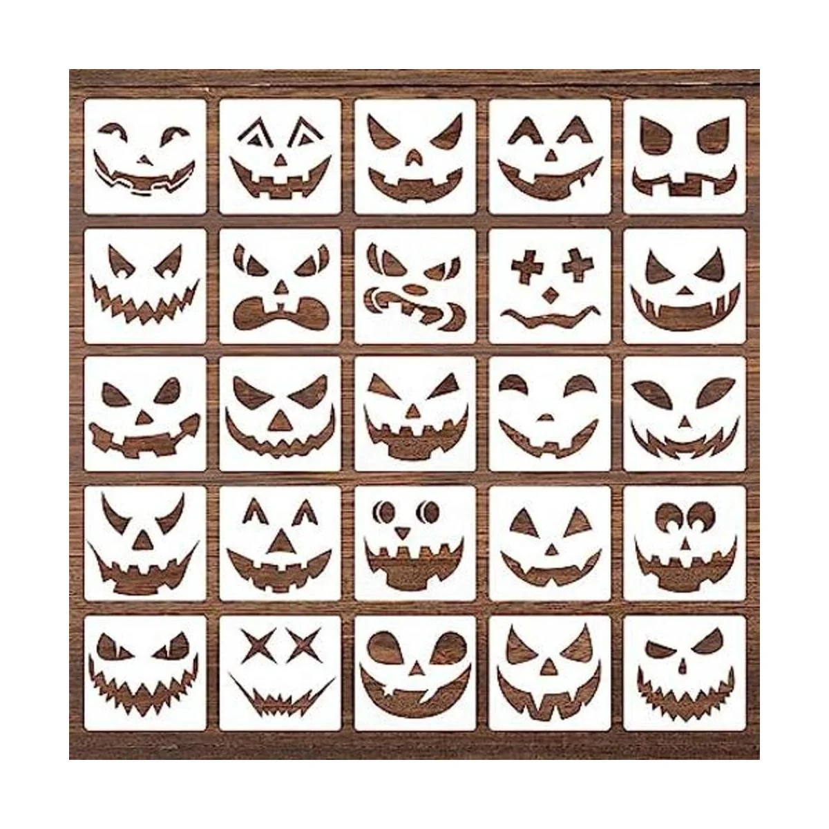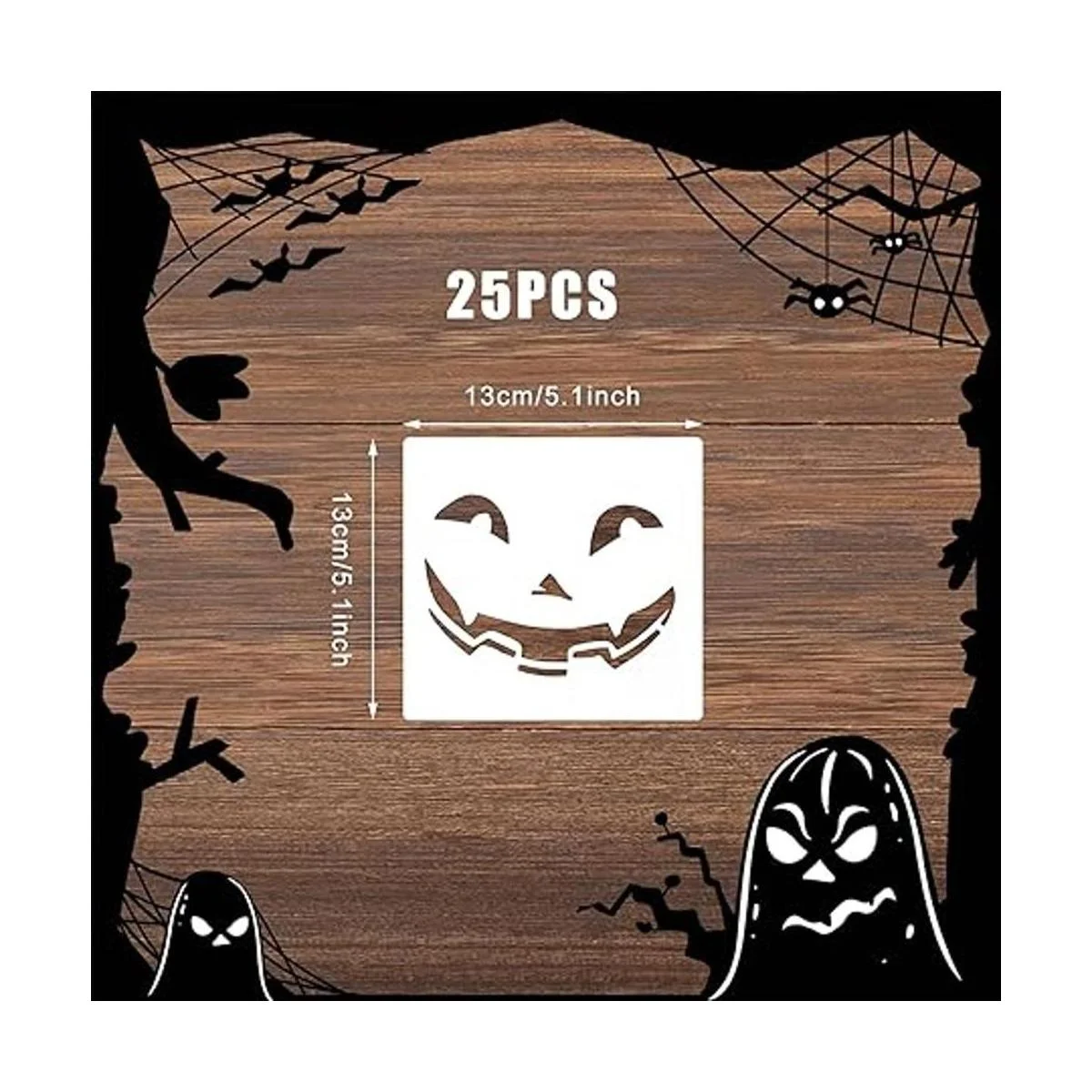 Contenido del paquete: recibirás 25 plantillas de calabaza de Halloween, cada una mide 5.1 x 5.1 in. Suficiente para tus necesidades de pintura o bricolaje.