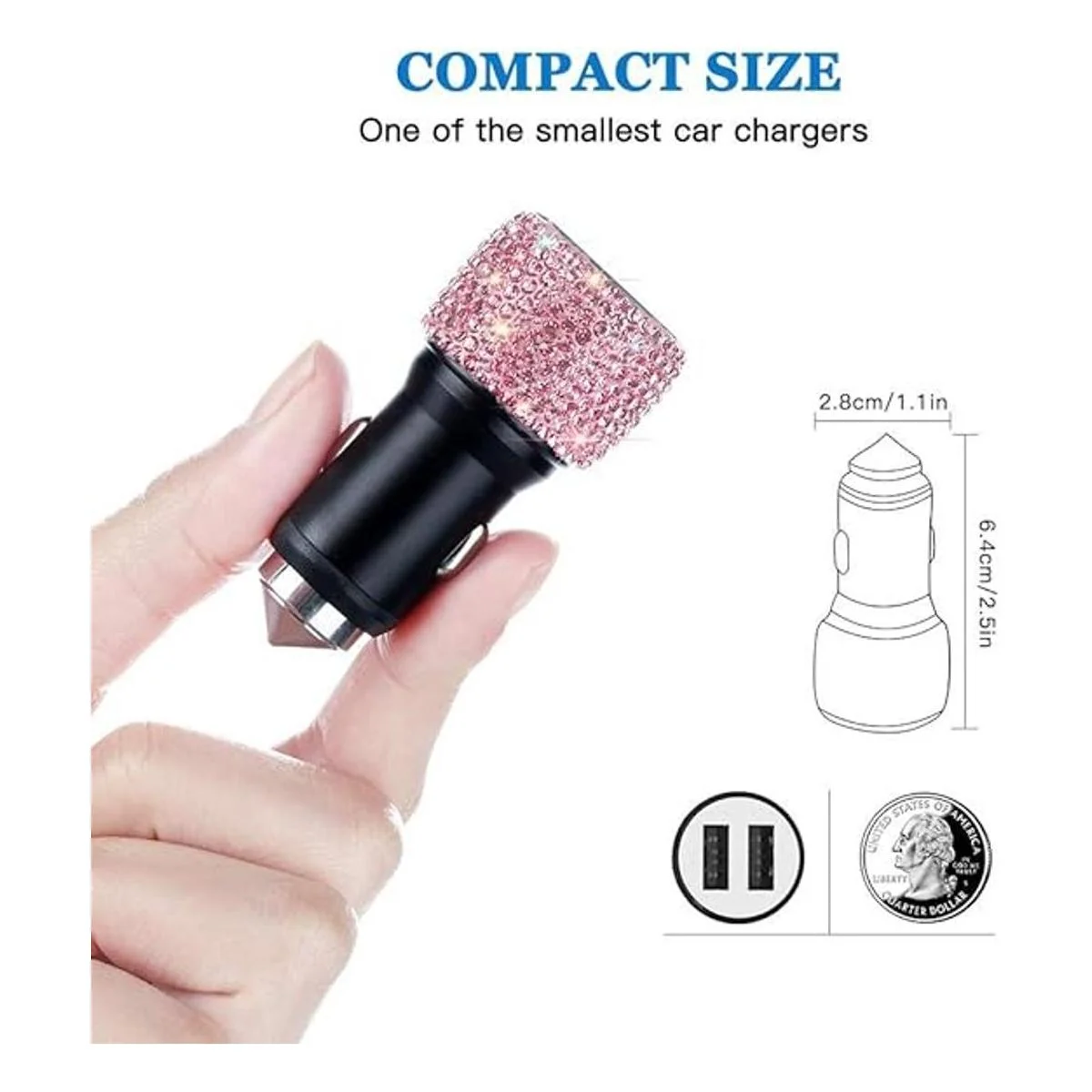SAVORI Cargador de coche doble USB, adaptador de coche con diamantes de imitación brillantes para decoraciones de coche de carga rápida para iPhone Xs Max X Plus, iPad ProMini, Samsung
