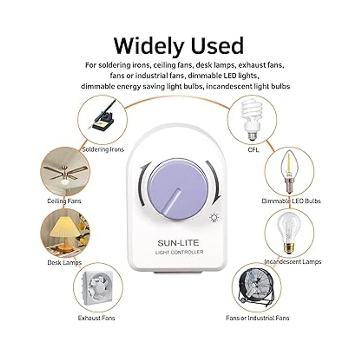 Sazomdon Control de temperatura del soldador, ventilador eléctrico, ventilador eléctrico de fábrica, ventilador de ventilación, controlador de corriente, lámpara de escritorio, luz LED de atenuación, interruptor de atenuación de enchufe con certificación UL, 120 VAC, blanco, paquete de 1.