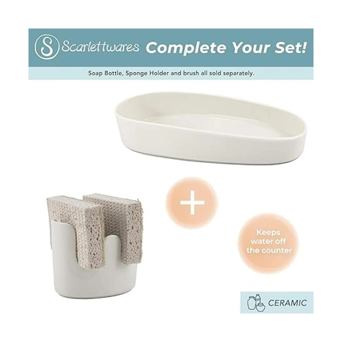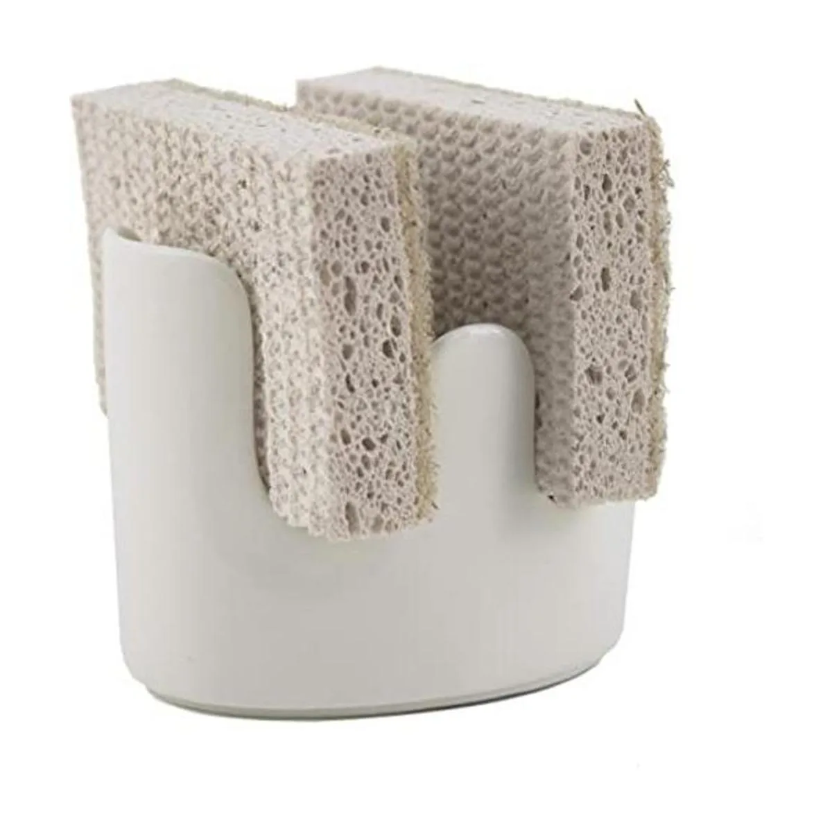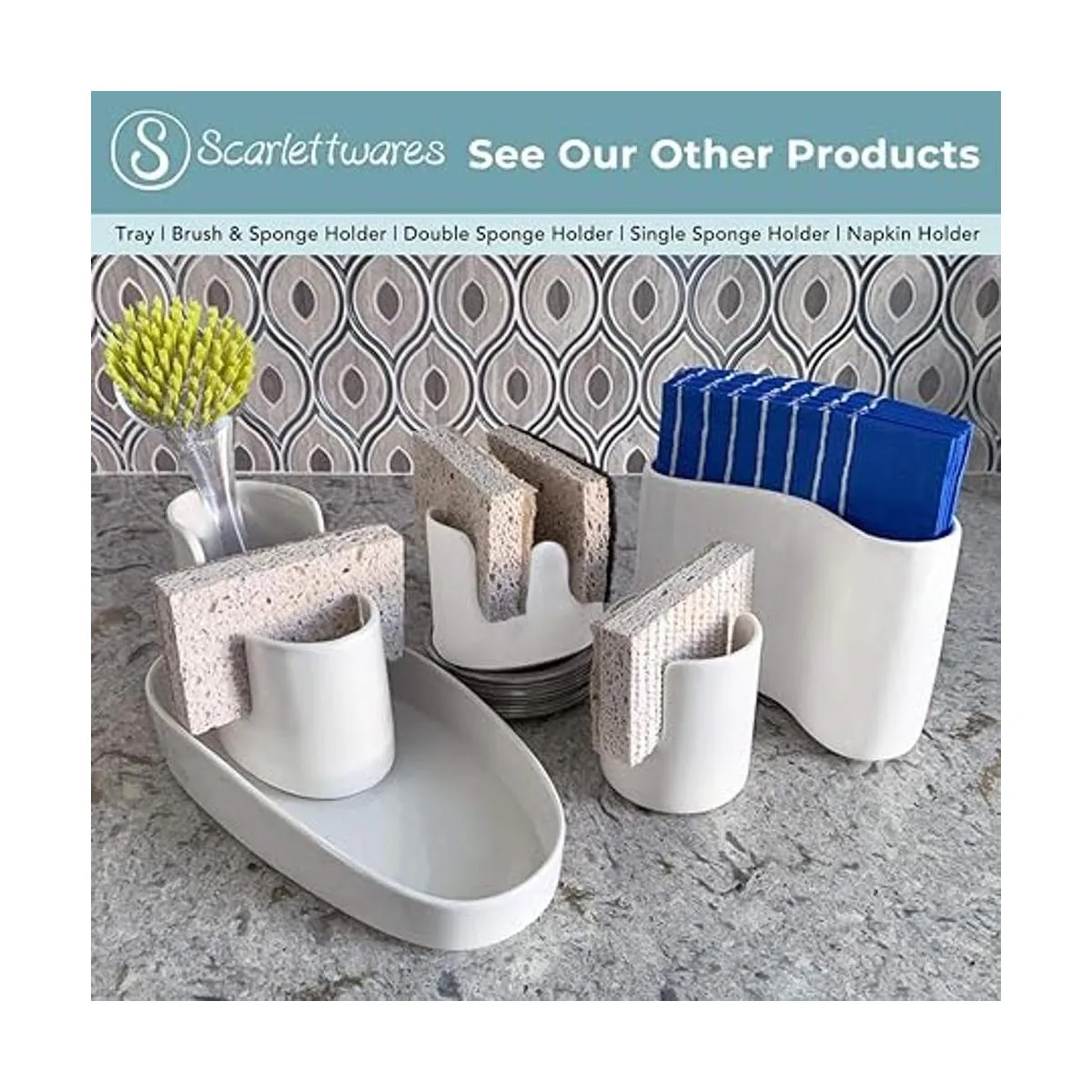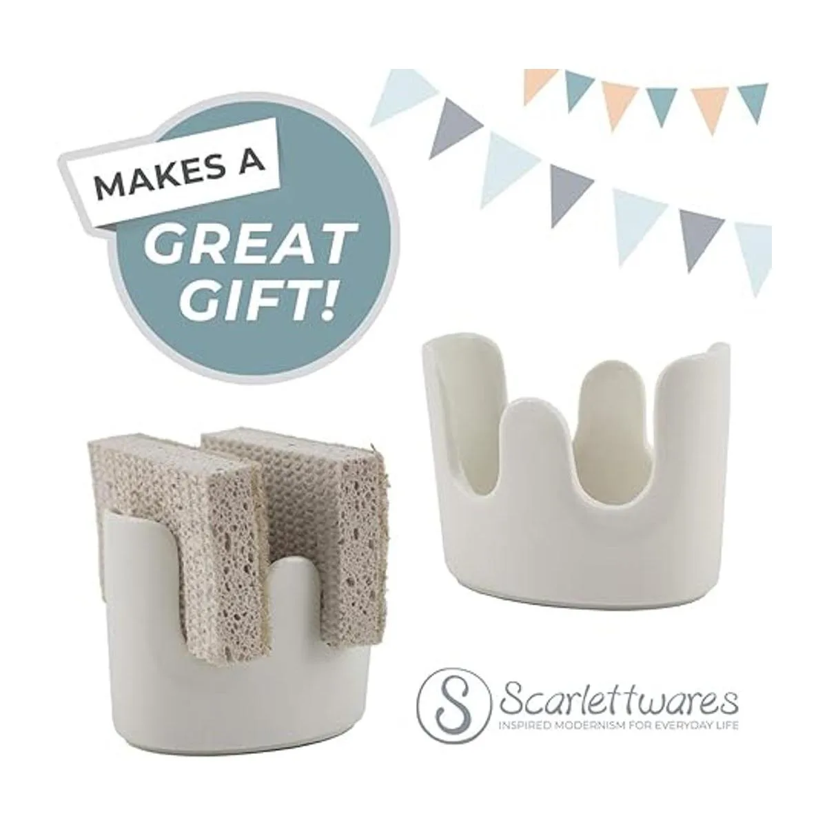 Scarlettwares Doble soporte de esponja doble para fregadero de cocina, organizador de cerámica blanca apto para lavavajillas, moderno, rústico, elegante diseño compacto
