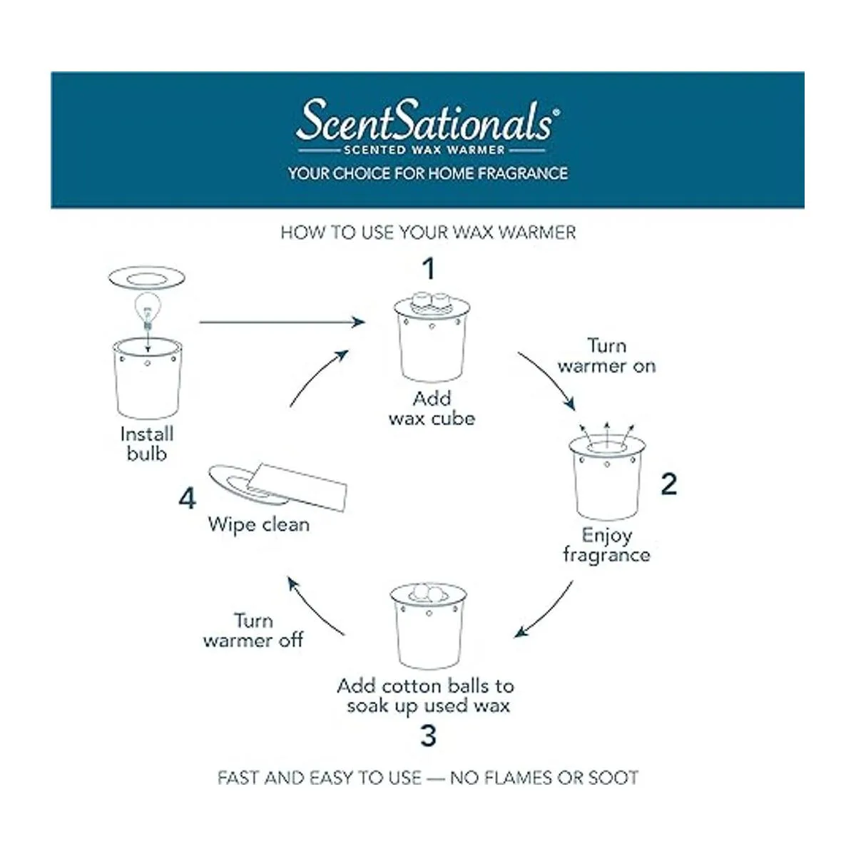 Increíbles fragancias: ScentSationals es el líder en calentadores de cera y cera derretida. Elige entre cientos de aromas diferentes de ceras para usar con tu nuevo quemador de cera. Las familias de fragancias de cera perfumadas de ScentSationals incluyen: fresca, floral, madera, fruta, panadería y especias. Los cubos de cera se venden por separado
