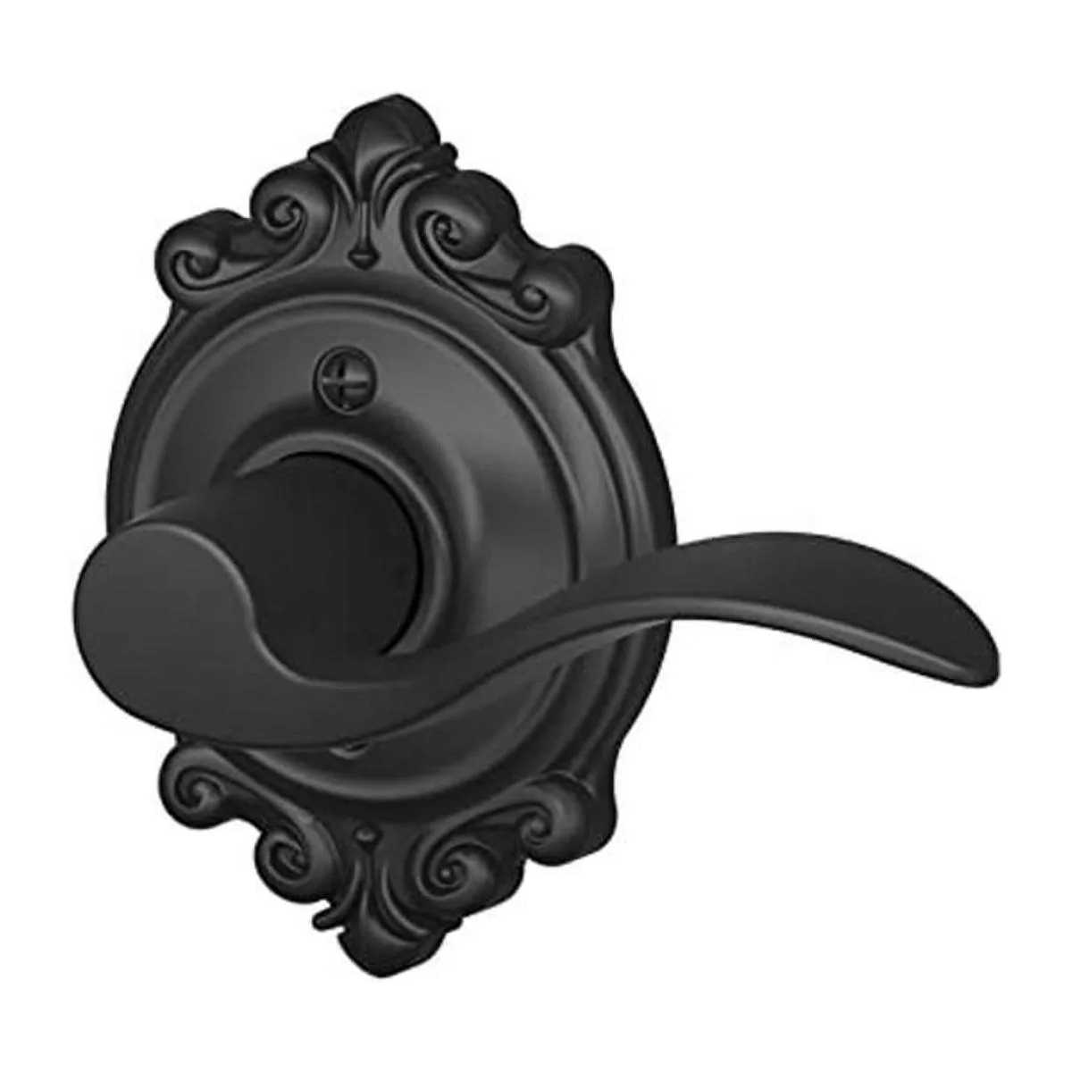 SCHLAGE Cerradura sin giro con manija Accent y moldura Brookshire en color negro mate Apertura a la derecha