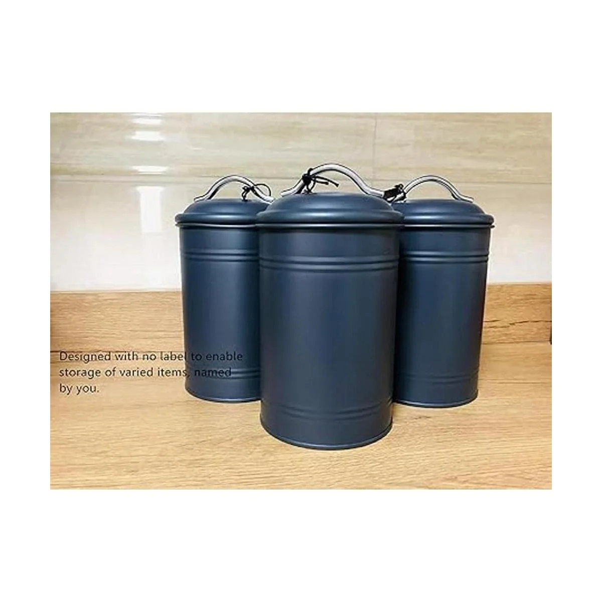 Schonee Bote hermético de cocina con tapa, contenedor rústico para decoración de granja para alimentos secos, azúcar, café, té, tarro de almacenamiento de encimera de metal gris carbón 7.87 pulgadas de alto x 4.3 pulgadas de diámetro