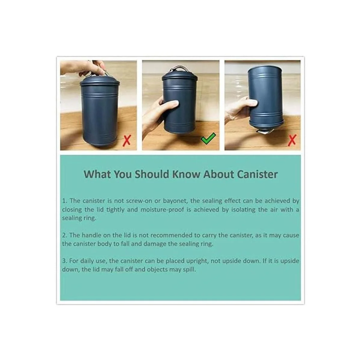 Tapa sellada hermética: tapa de junta de silicona hermética con asa, manteniendo el contenido fresco y seco. Ideal para alimentos secos, azúcar, café molido o almacenamiento de té, también se puede utilizar para mantener galletas, dulces, granos, especias y otros ingredientes frescos. No se recomienda el almacenamiento de líquidos.