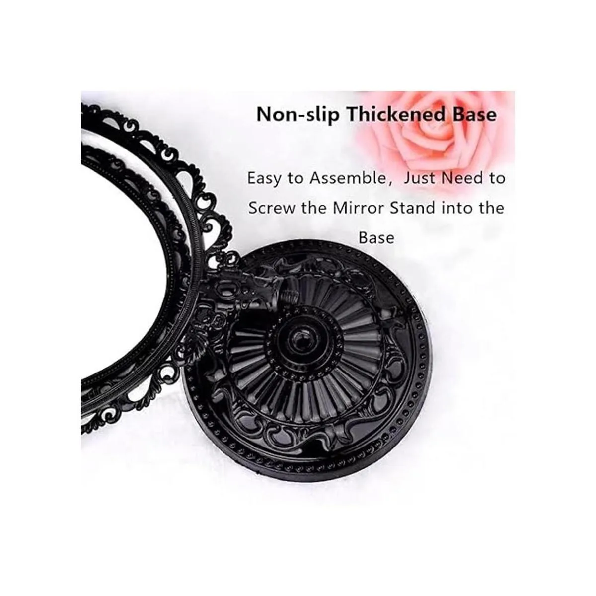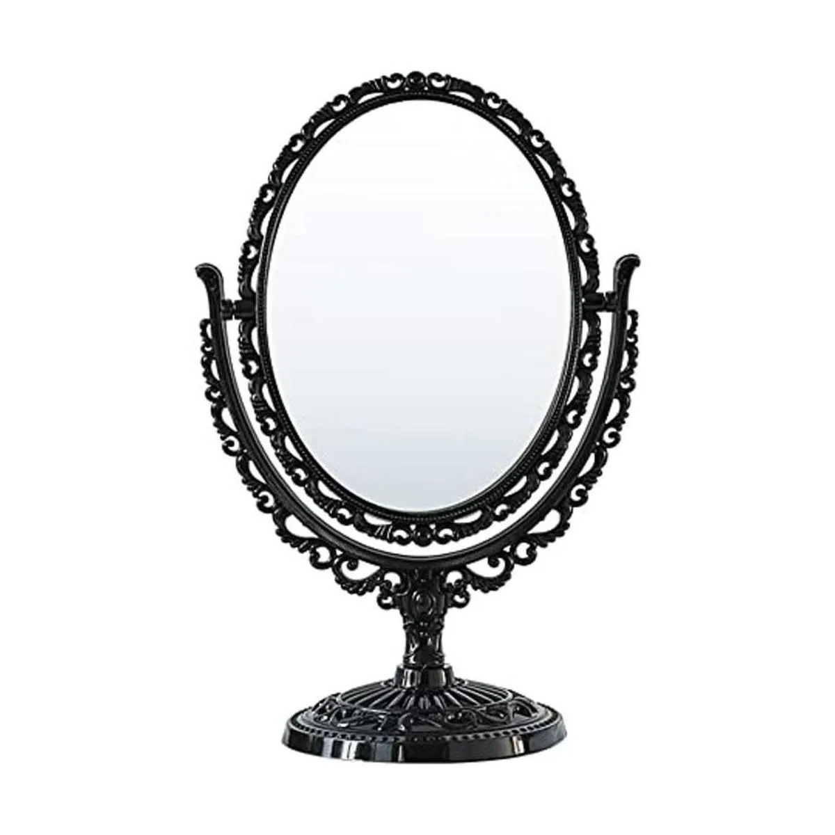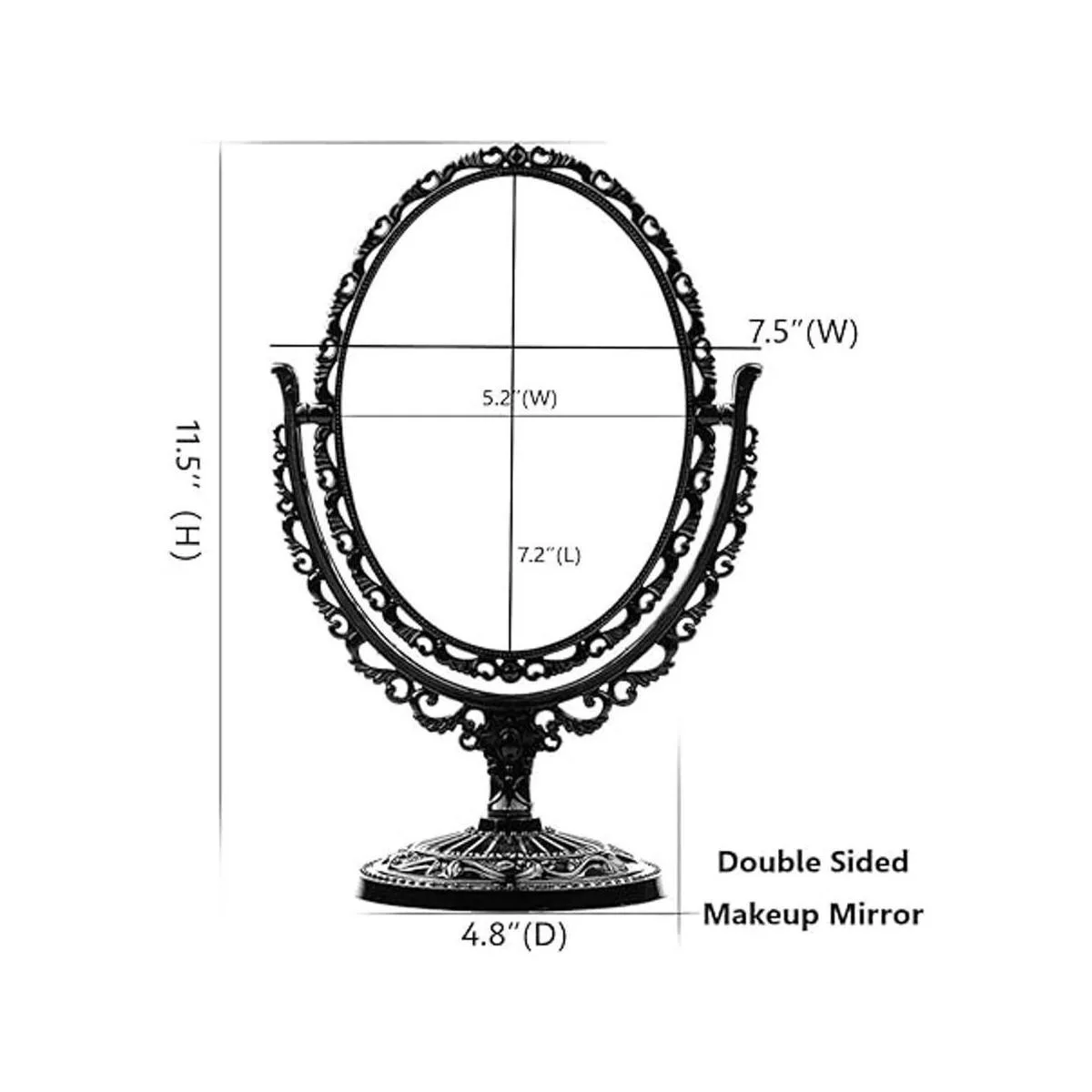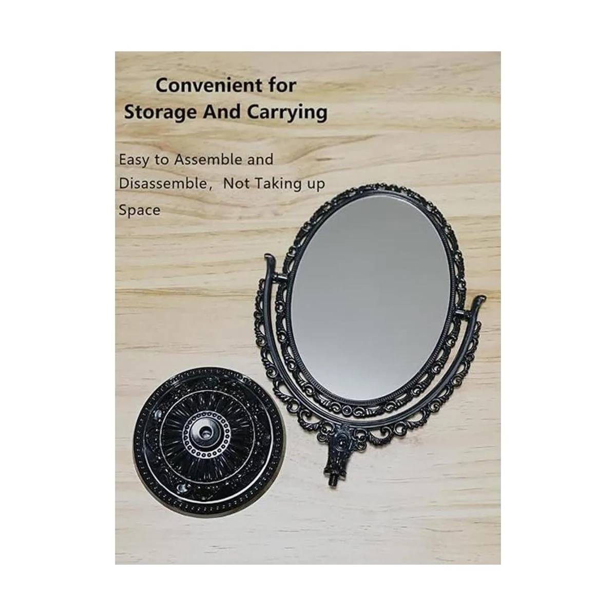 Schones Geschaft Espejo de maquillaje de mesa de 2 caras, espejo de tocador giratorio vintage, espejo cosmético, espejo ovalado de doble cara negro