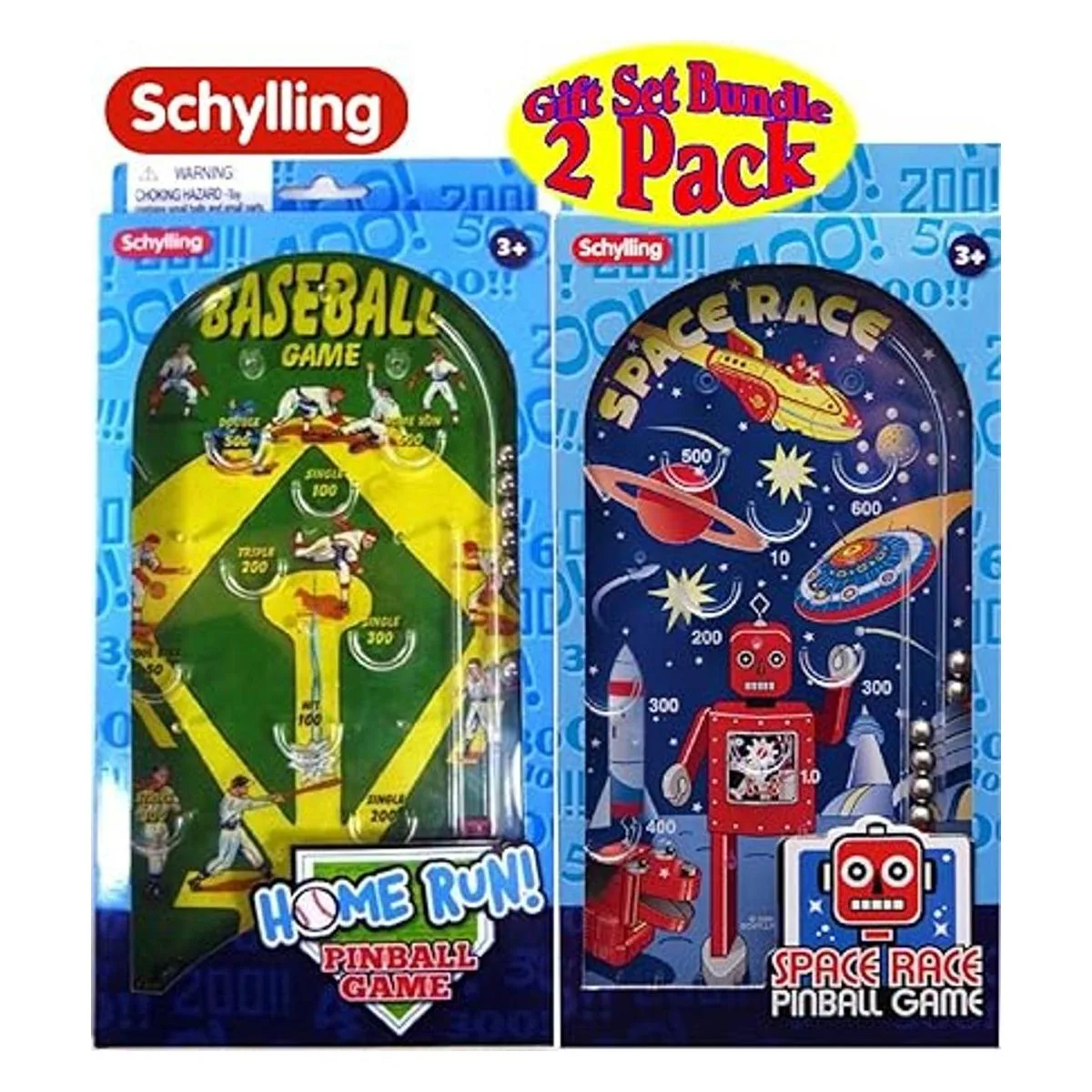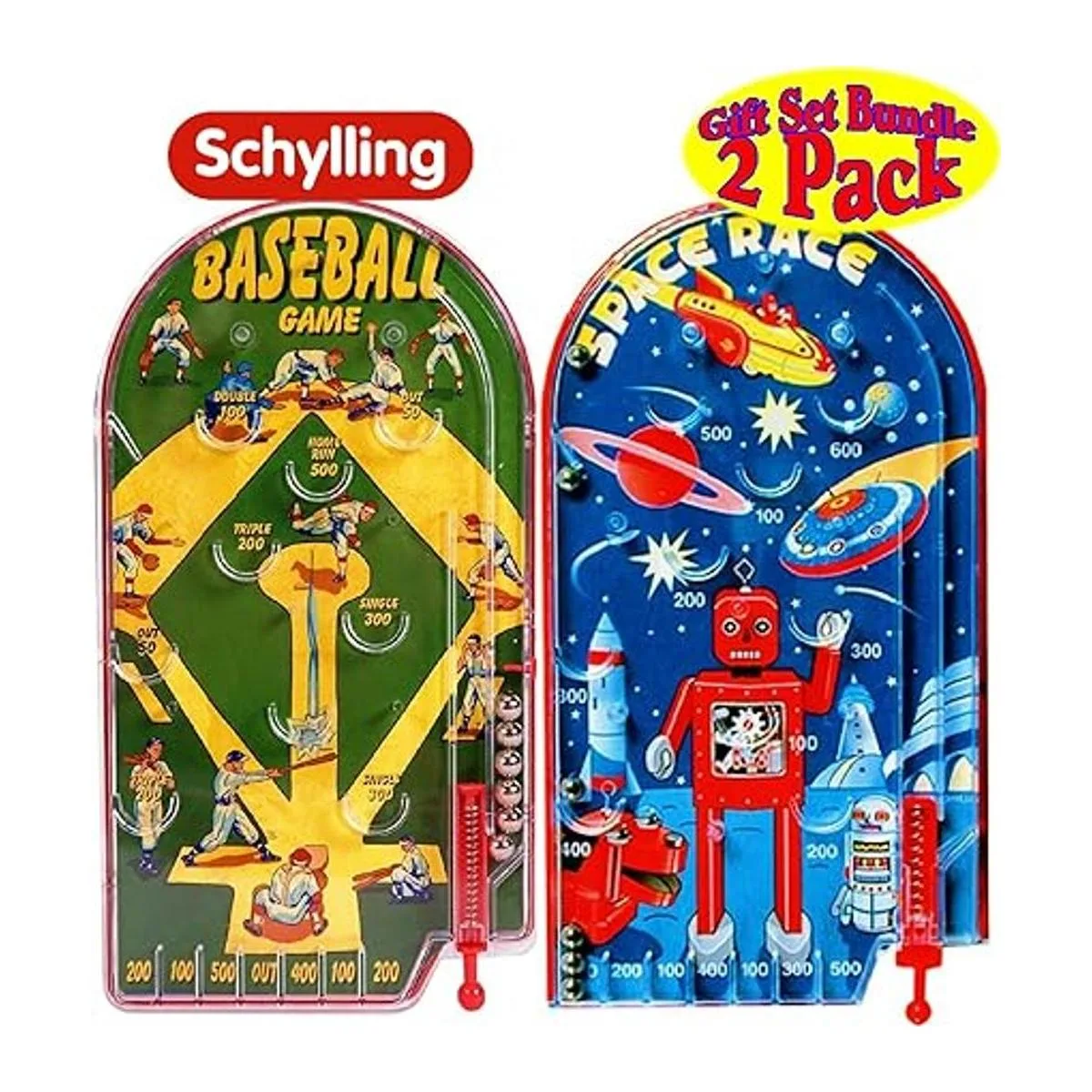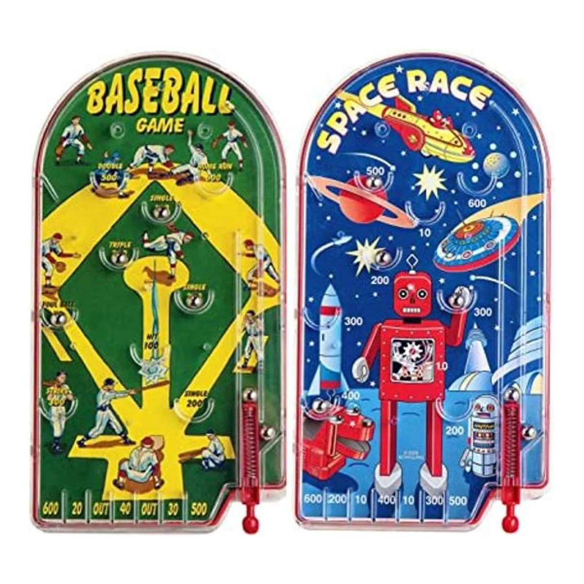 El paquete de regalo incluye 2 juegos de pinball clásicos diferentes de Schylling Space Race Home Run Béisbol