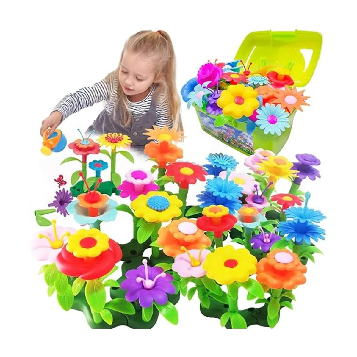 Maravilloso regalo educativo para niñas: los juguetes de construcción de jardín de flores brillantes y coloridos benefician a los niños en la coordinación ojomano y las habilidades motoras finas en el desarrollo temprano. Con la regadera, los adolescentes se sentirán más realistas al aprender a plantar y regar flores. Todos los diseños hacen que sea un buen regalo para niñas en cumpleaños, Pascua, Navidad, Año Nuevo y actividades de campamento de verano.