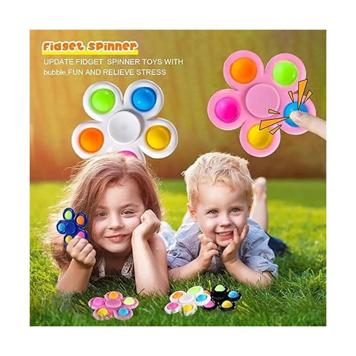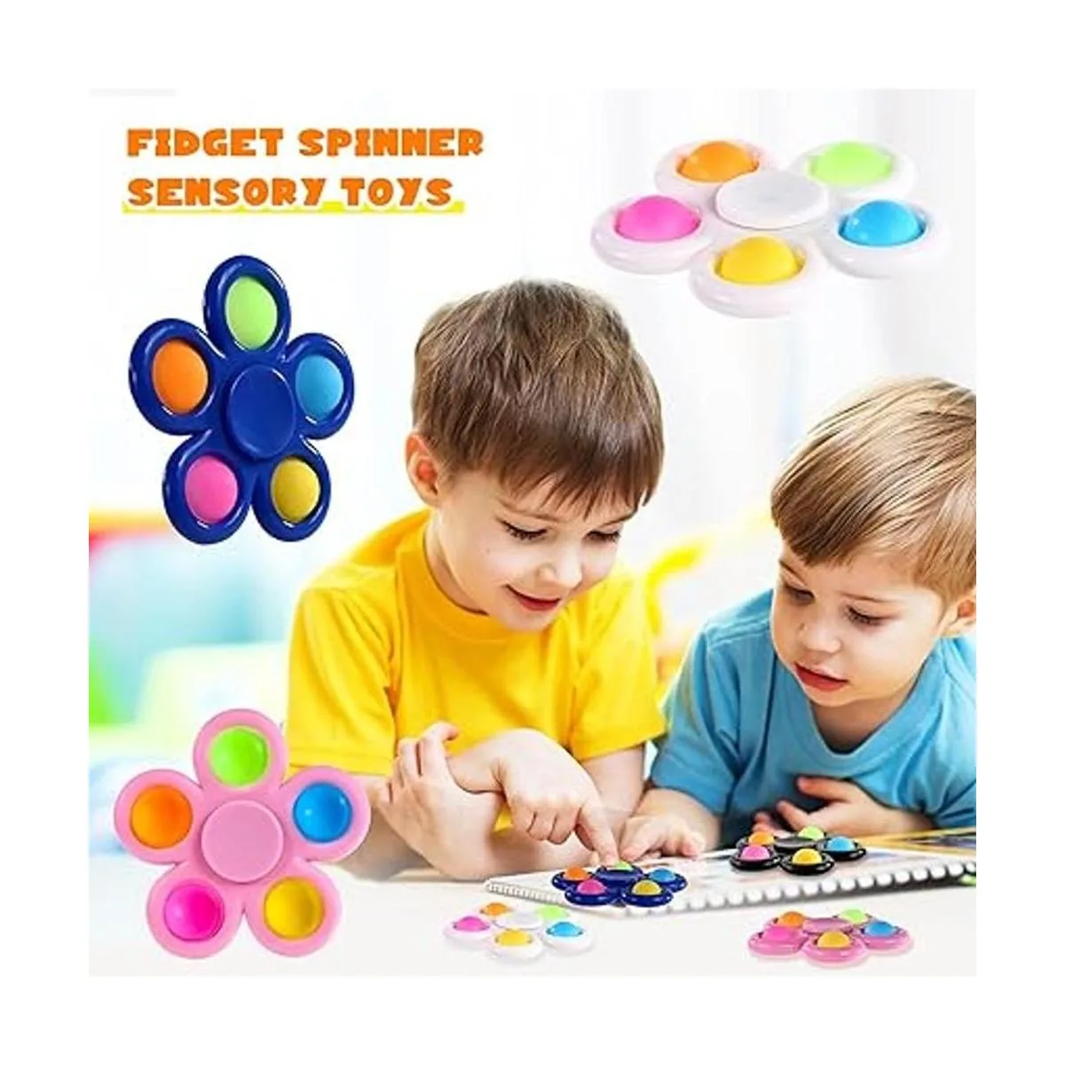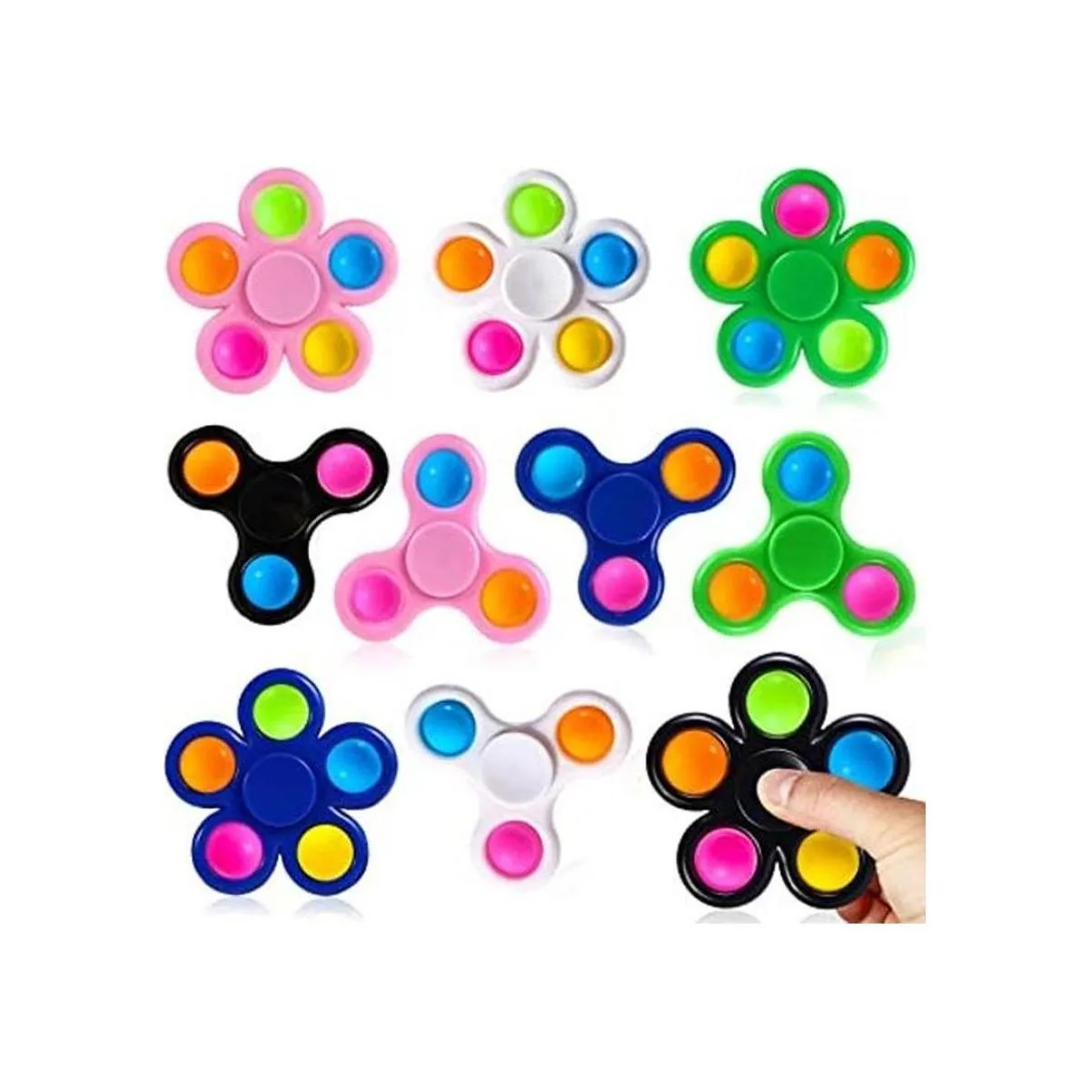 Recuerdos de fiesta para niños de 4 a 8 años: hay 10 spinners coloridos en un paquete. Los juguetes de relleno de calcetines para niños no solo son un spinner que se puede girar, sino que también se puede utilizar como juguete sensorial de burbujas que se puede presionar con las yemas de los dedos. El estilo único te permite tener tanto el juguete antiestrés como grandes regalos de carnaval para niños al mismo tiempo, también es un gran éxito para regalos de cumpleaños.