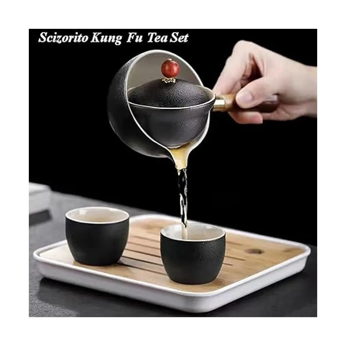Diseño: nuestro juego de té Scizorito Travel utiliza un diseño de suspensión de 360 grados, el filtro y la tetera son desmontables por rotación, el diseño de suspensión no se cae, el mango de madera gira el agua, diseño creativo, fácil de usar. El tamaño del juego de té Kung Fu es un poco pequeño, compra con precaución.