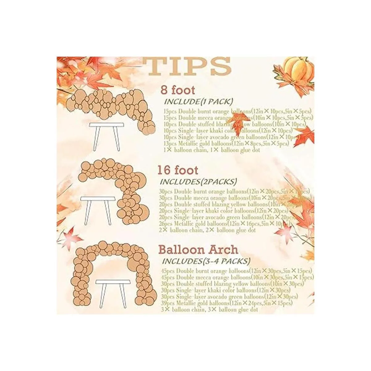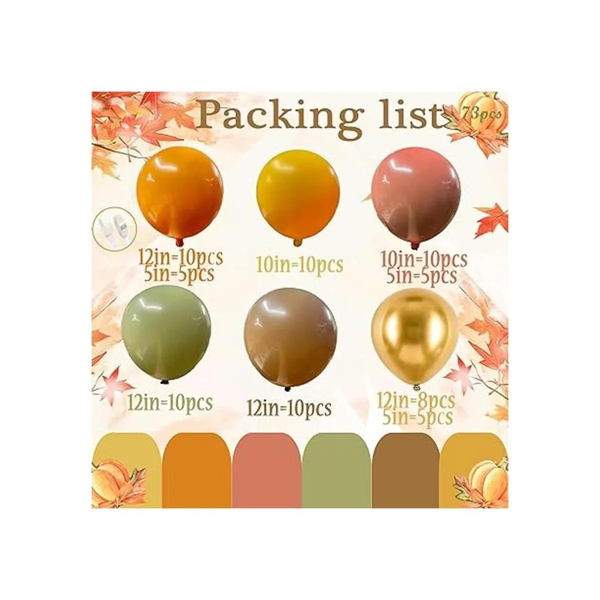 Kit de arco de globos de otoño: incluye 15 globos de color naranja de doble relleno, 15 globos de arcilla coral de doble relleno, 10 globos amarillos, 10 globos de color marrón claro, 10 globos de aguacate, 13 globos dorados metálicos, 1 tira de globos, 1 pegamento para globos, juego de decoración de fiesta de otoño de gran valor.