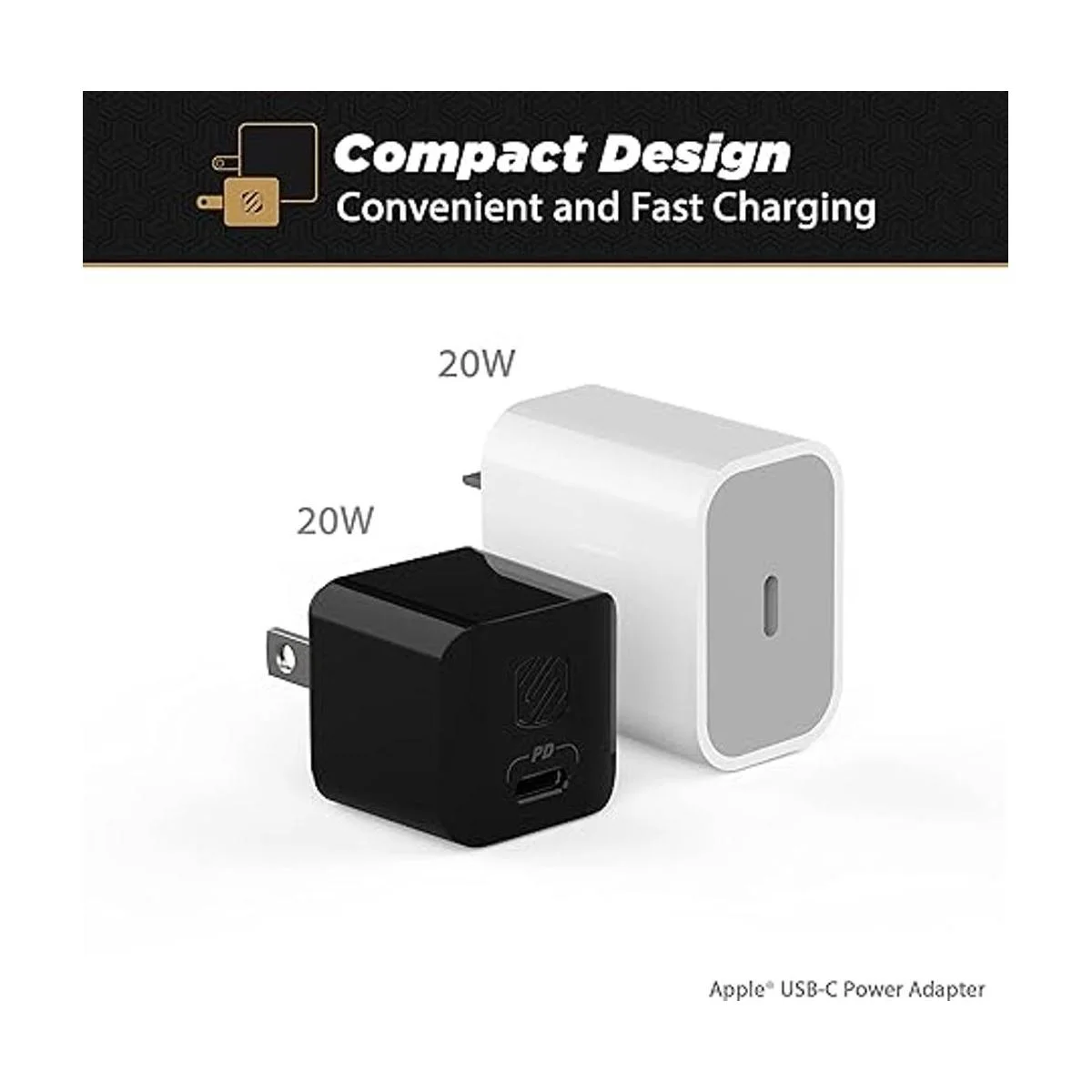 SCOSCHE HPDC20SP Cargador rápido PowerVolt 20W Mini Cube USBC, adaptador de pared para teléfono, carga de alimentación 4 veces más rápida, enchufe de salida portátil, color negro