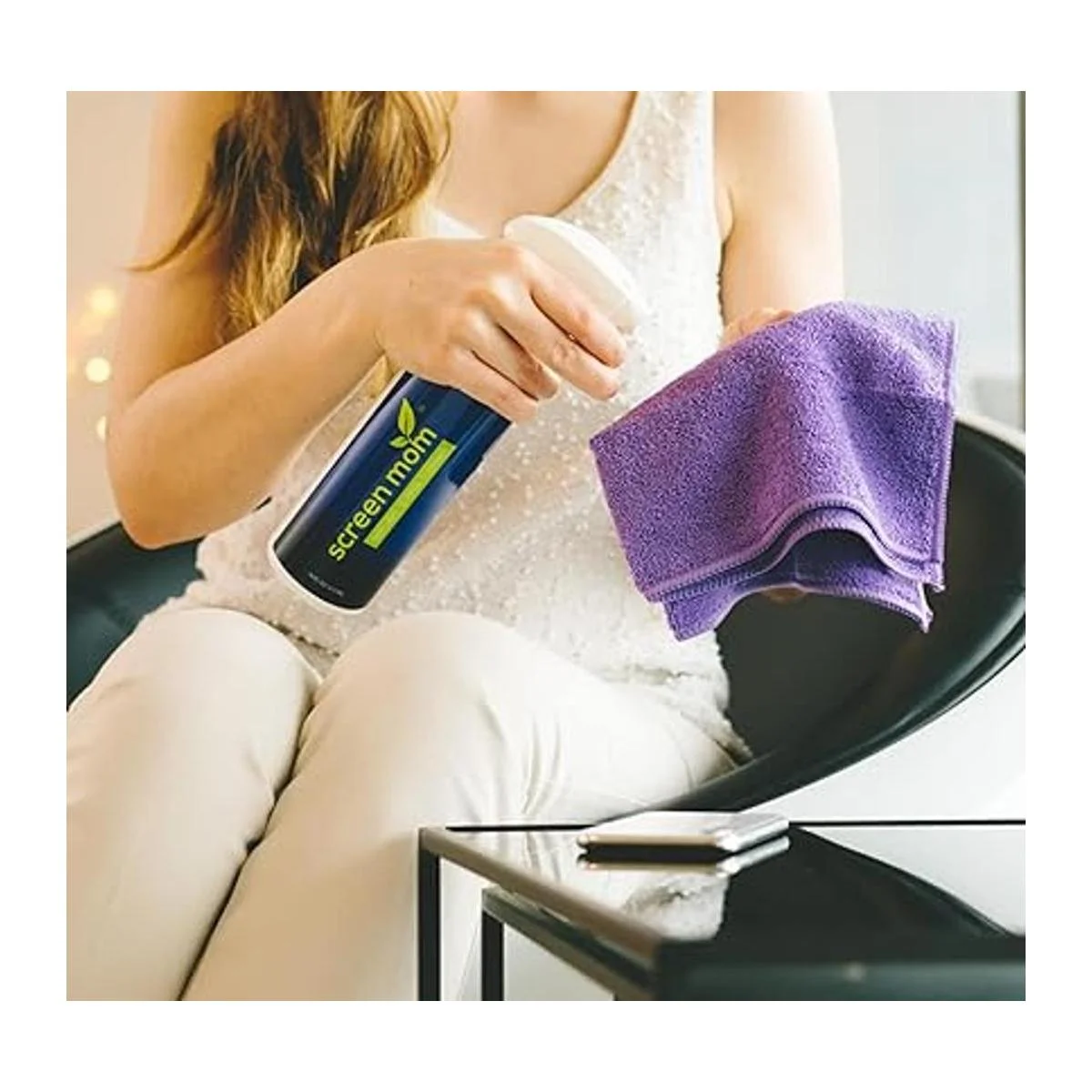 Screen Mom Spray limpiador de pantalla 32 onzas, 2 botellas de 16 onzas, limpiador de pantalla de TV, limpiador de pantalla de computadora, para computadora portátil, teléfono, iPad, kit de limpieza de computadora, limpiador electrónico, 2 toallas de microfibra incluidas