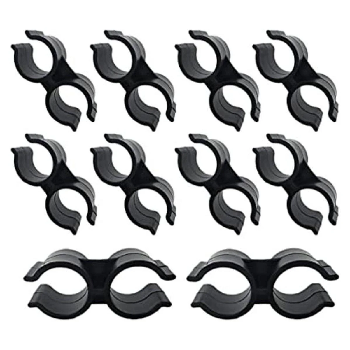 SCRTB Abrazadera de tubo doble, 10 piezas de conexión de abrazadera de tubo, conector de poste de estante, abrazaderas de tubo de doble puerto, accesorios de sujeción de clip de estante de supermercado de almacén