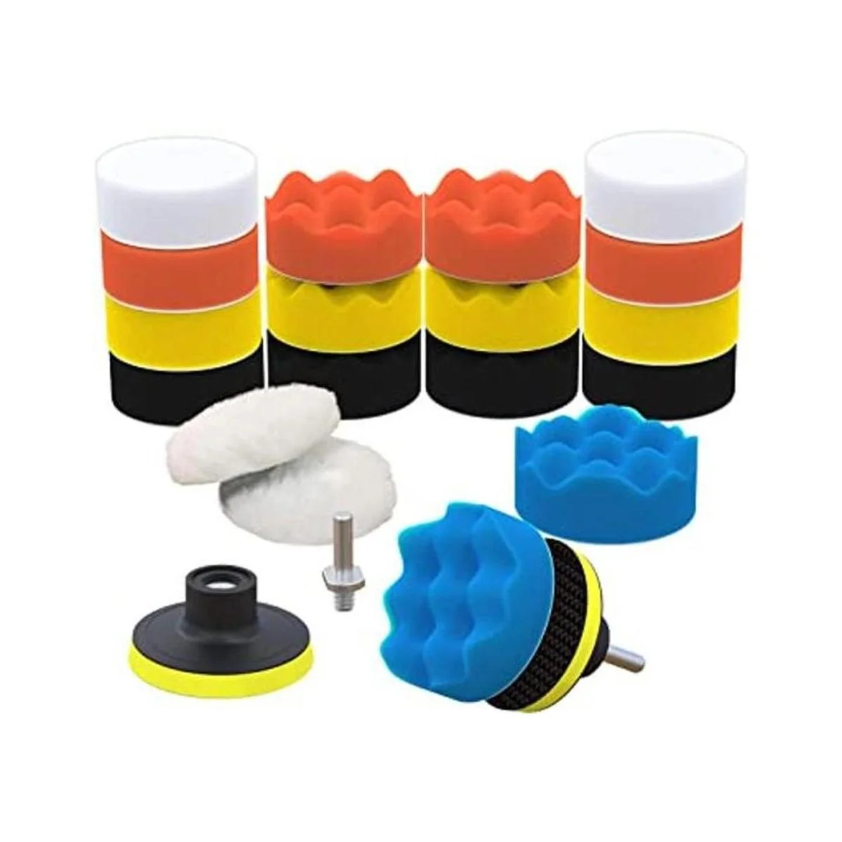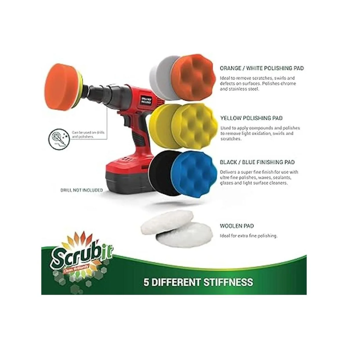 SCRUBIT Paquete de 22 almohadillas de pulido de espuma para automóvil, incluye 16 esponjas de detalle 3 pulgadas, 2 almohadillas de amortiguación de lana, 2 adaptadores de taladro y ventosas para tu vehículo, juego de encerado y pulidor