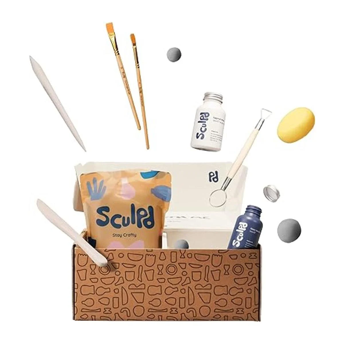 SCULPD Kit de cerámica para dos, kit de inicio de arcilla seca al aire para principiantes con barniz mate, pinturas, herramientas y guía