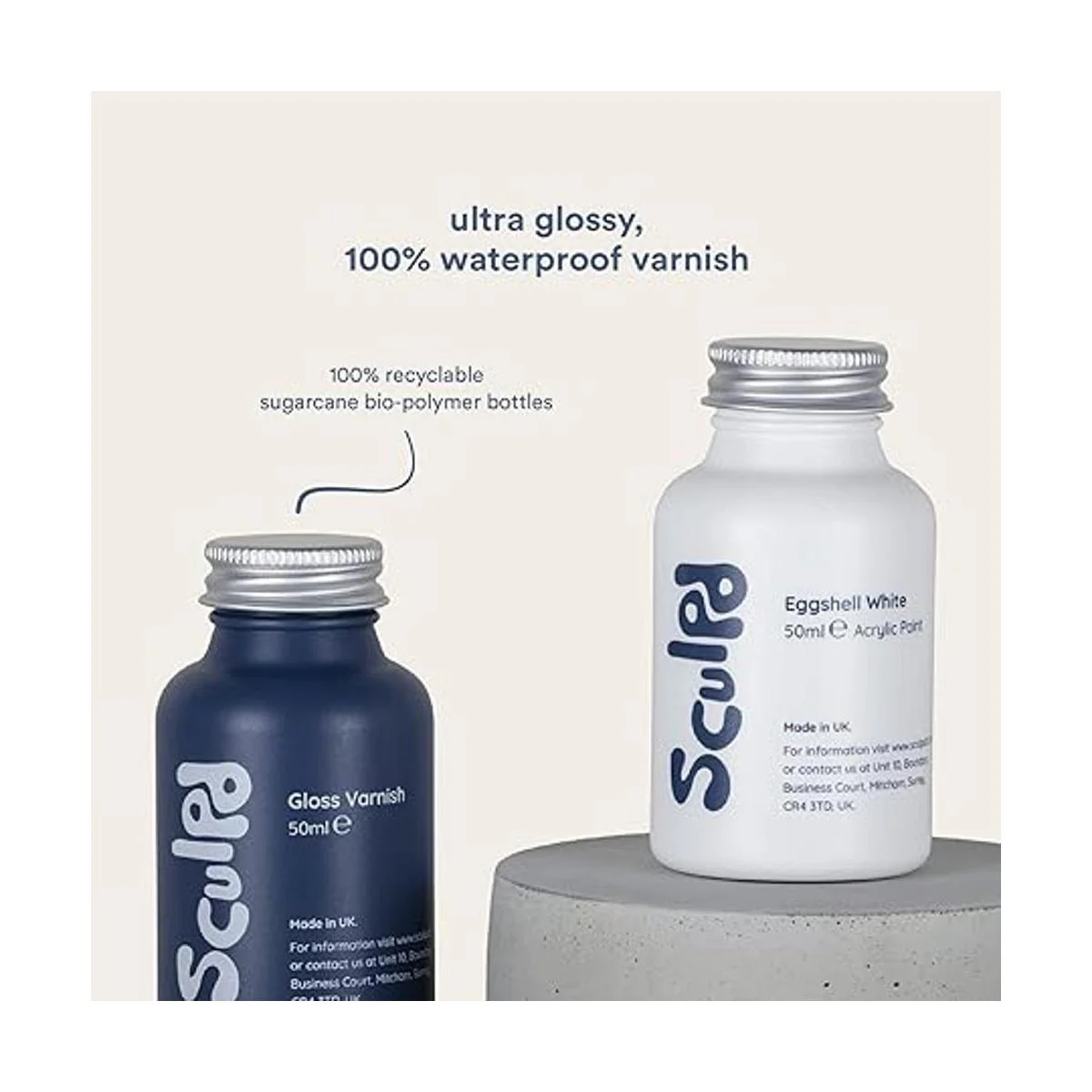 Barniz mate: hemos desarrollado un hermoso barniz mate, especialmente para su uso con arcilla seca al aire Sculpd. Este barniz le da a tus piezas de cerámica un acabado mate de aspecto natural y las hace impermeables. Ahora puedes hacer macetas que duren desde casa.