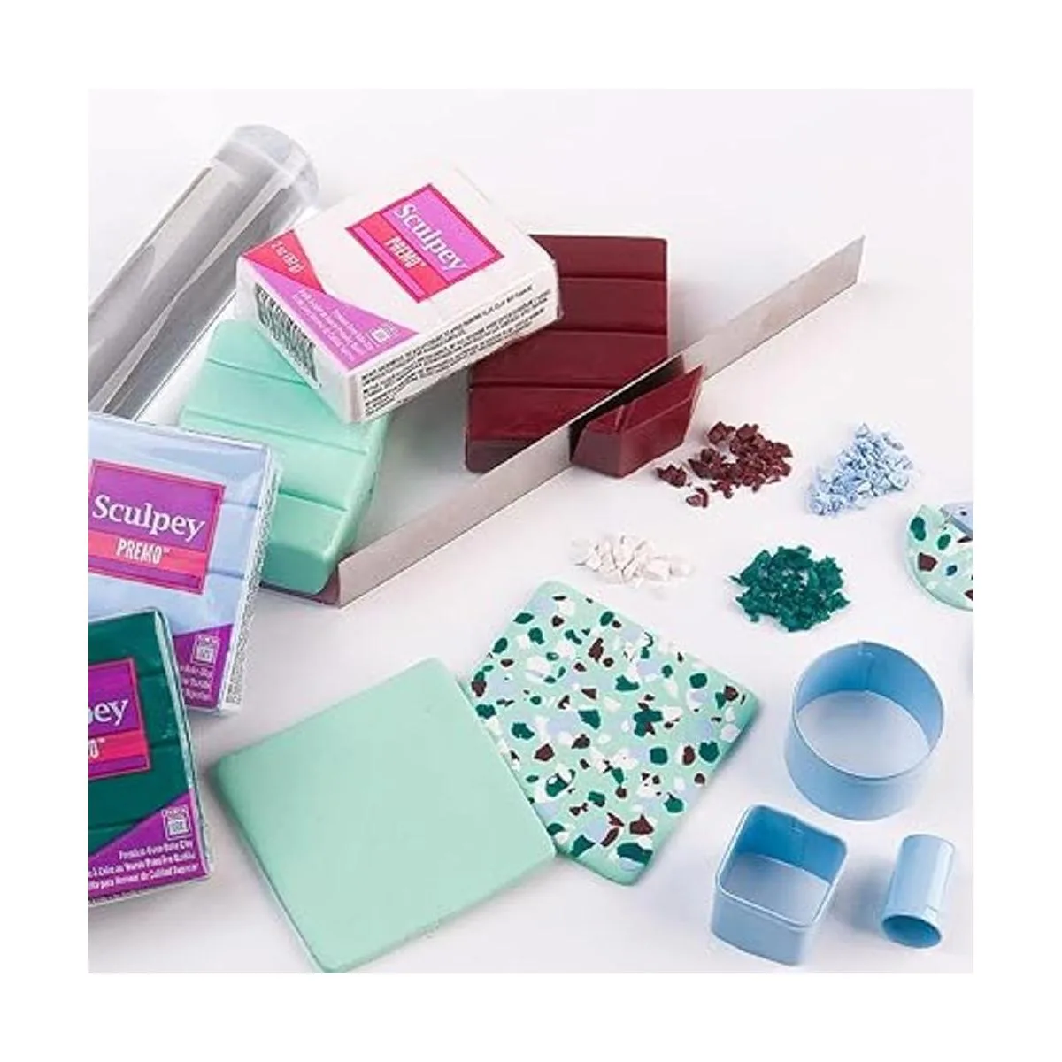 Sculpey Premo viene en 54 colores densamente saturados, incluyendo purpurina, metalizados, perlas, granitos y translúcidos. Translúcido, añade un efecto translúcido único a cualquier proyecto de arcilla, desde joyas hasta decoración del hogar