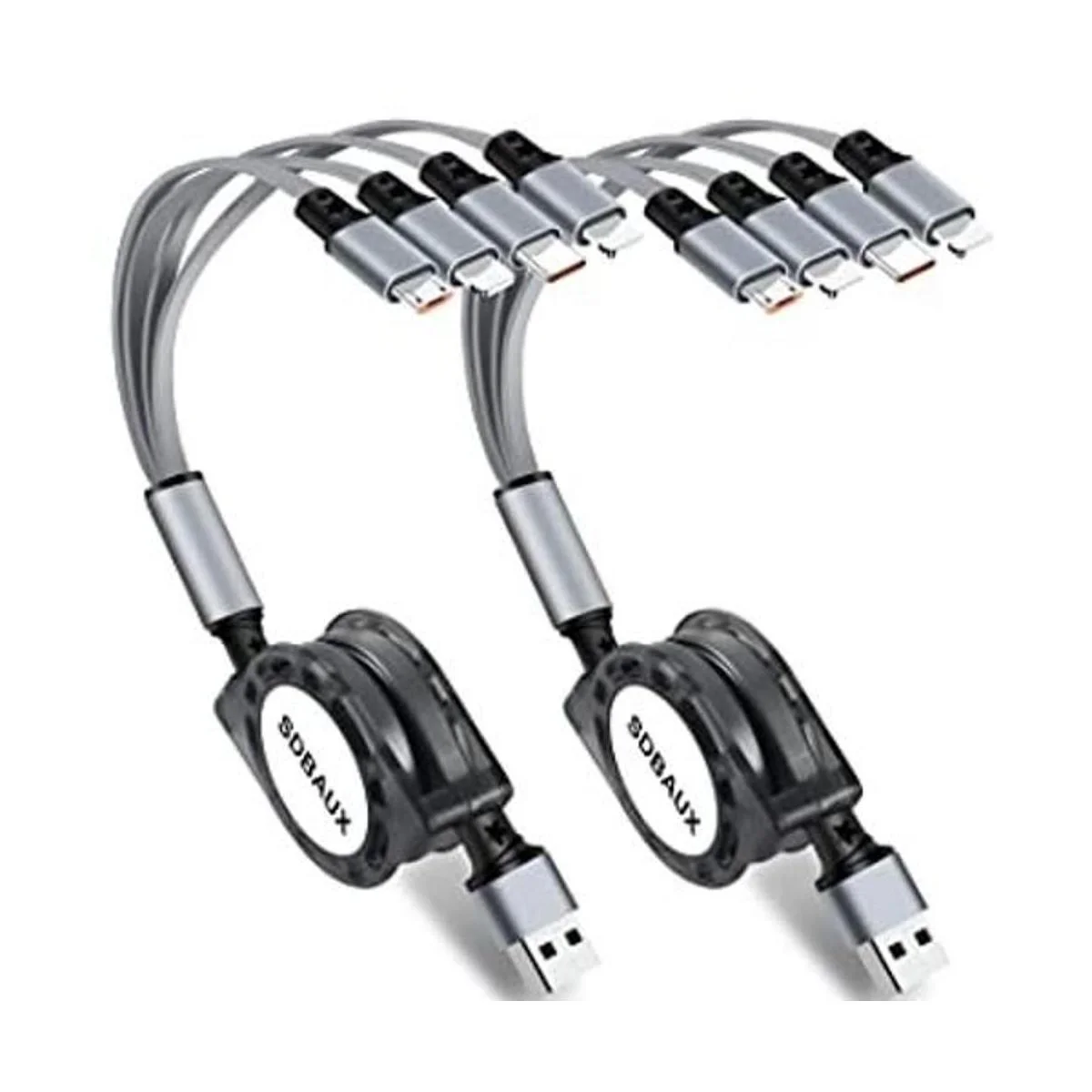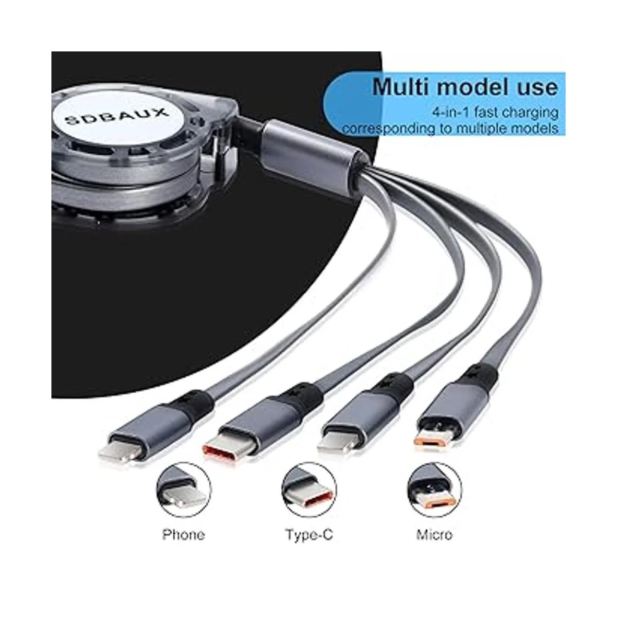 4in1 Design: SDBAUX 4 in 1 usb charger cable 4 charge cords for you Retractable Mini Port2 Micro USB Standard Port Type C New style charging port. Easy to switch between Mini Micro USB Type C, hot plug supported.