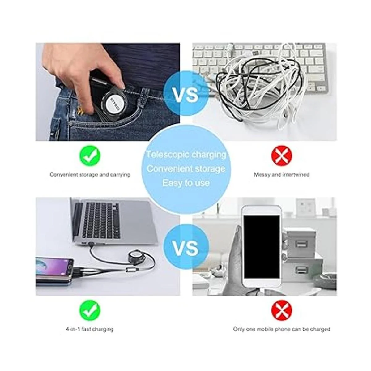 Compatibility List: 4in1 fast charging retractable cable compatible / replacement S10 S9 S8 Plus Note 10 9 8,Moto Z,LG V20 G8 G7 s3 / s4 / s5 / s6 / s7 / s8,Phone 11pro/xs/xr/x/8/7/6s/5se/for most mobile phone charging and More .