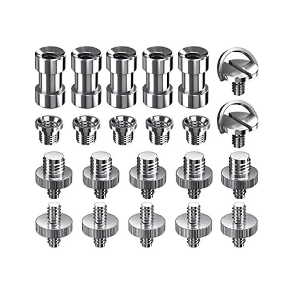 Usos: el kit adaptador de montaje de tornillo para trípode de cámara se puede conectar a una amplia gama de diferentes dispositivos de cámara DSLR, monopié, rótula, soporte de luz flash, asiento de conversión, parte inferior de zapato caliente, plataforma de hombro y otros accesorios.