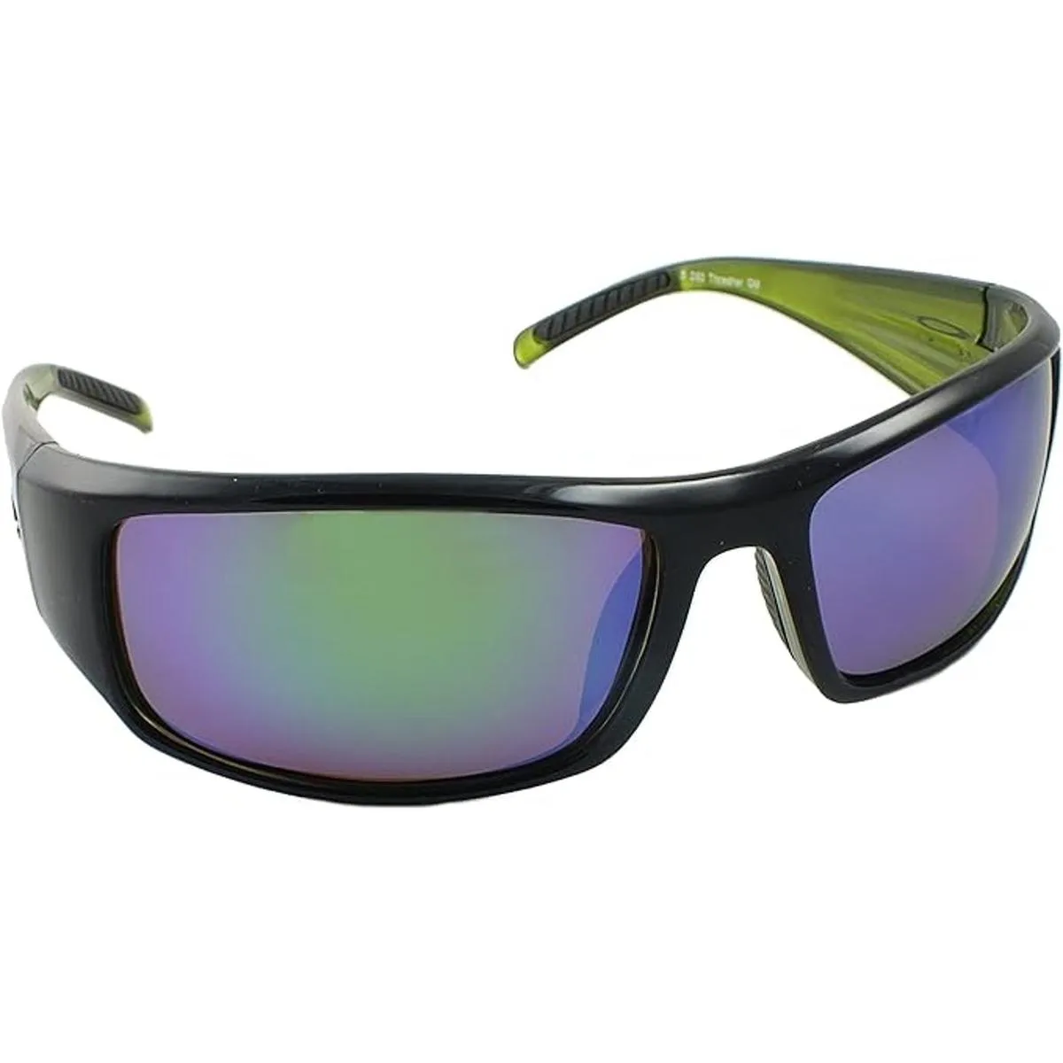 Sea Striker Thresher Gafas de sol polarizadas, color verde dentro de marco negro, lente de espejo verde